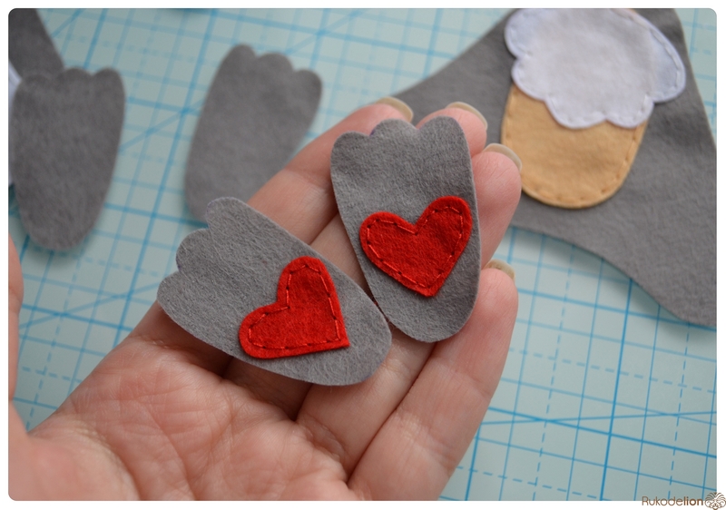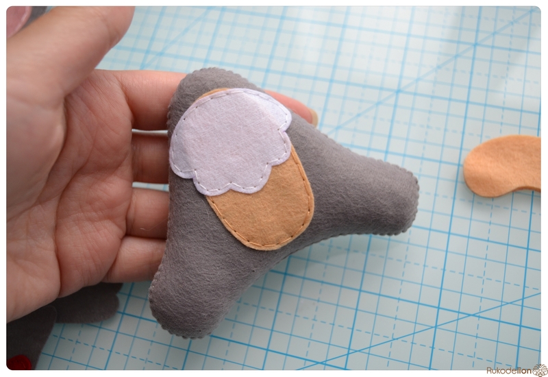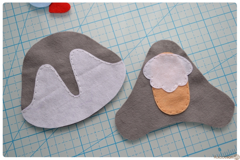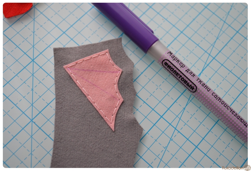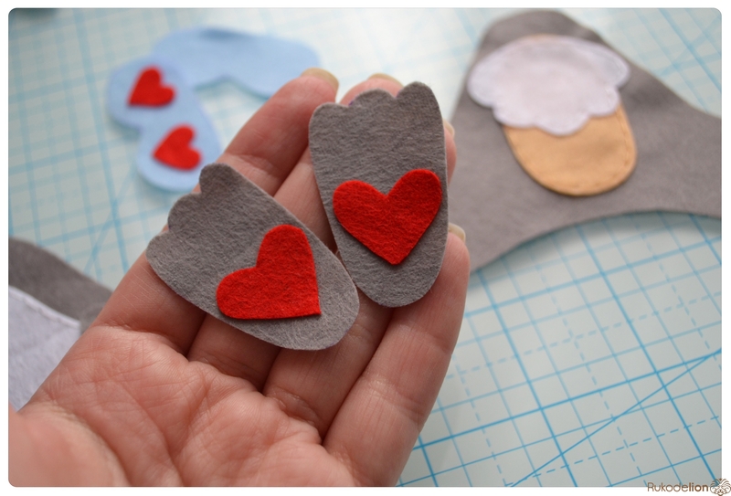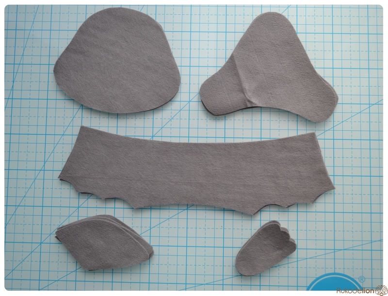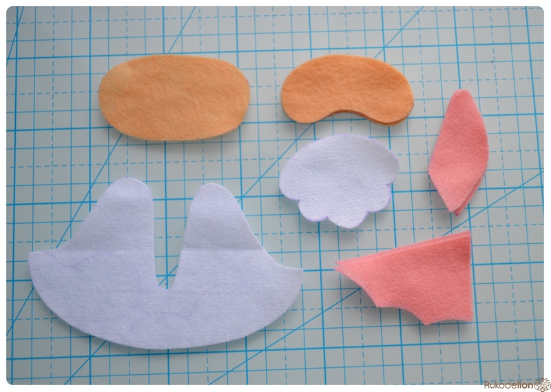 1. Фетр: серый, белый, бежевый, голубой, красный, синий, черный, розовый. Я буду использовать испанский 100% полиэстеровый мягкий 0,5 мм толщиной фетр.