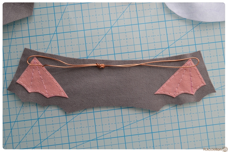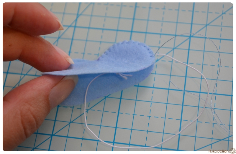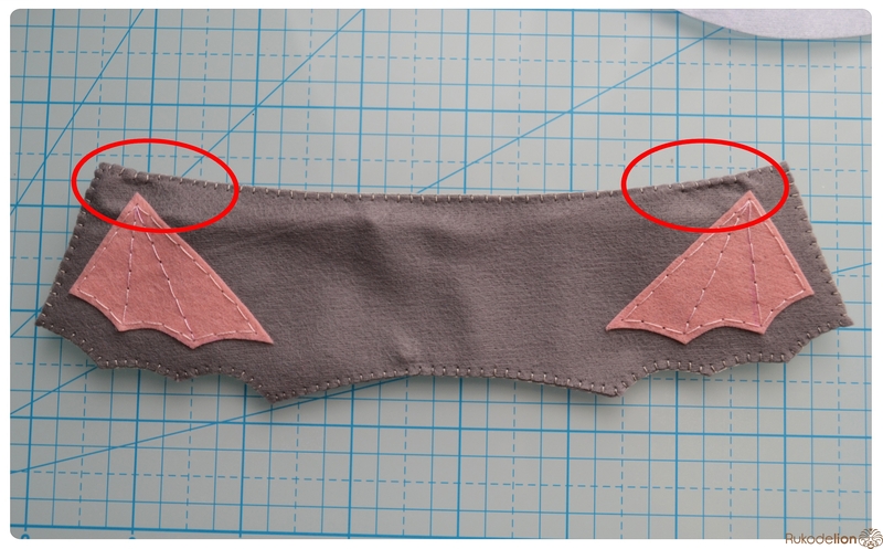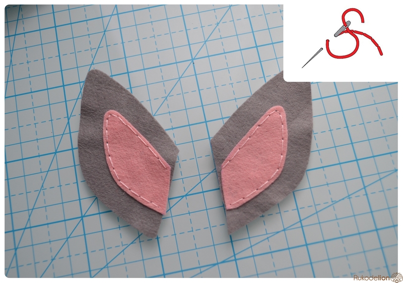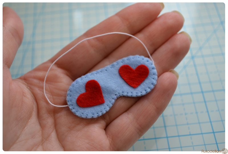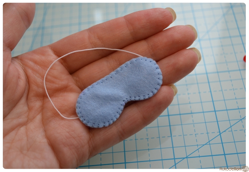 Складываем две детали маски и начинаем сшивать их голубыми нитками петельным швом. Не забудьте вложить при сшивании резиночку. Мне понадобился отрезок 12 см, который я связала по краям и вложила в маску при сшивании, спрятав узелок внутри. Такую резинку можно протянуть в маску и после пошива, при помощи иглы