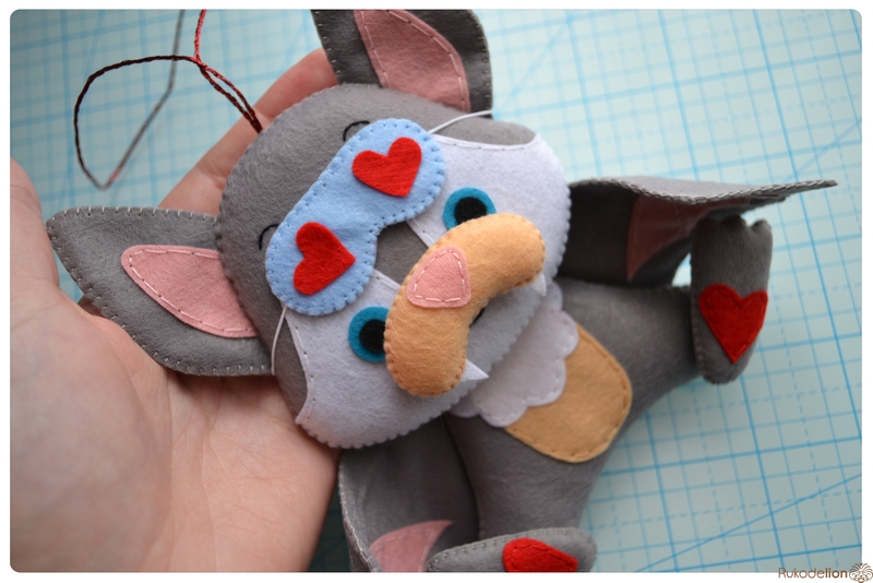3. Инструменты и прочее: иголка, ножницы, синтепон, белая краска по ткани, румяна, самоисчезающий маркер, клеевой пистолет со стержнем, клей "Момент Кристалл" (либо любой другой ваш любимый текстильный клей), пробойник по фетру, проволока, резинка и декоративный шнурок для подвешивания