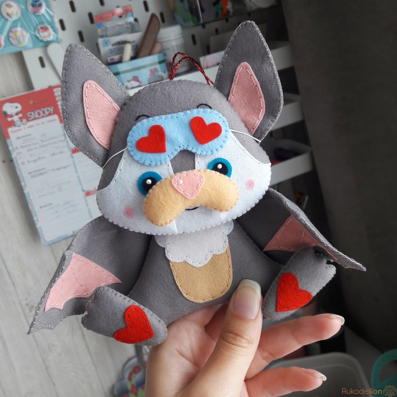 Сегодня вместе с вами мы сошьем из фетра вот такую летучую мышь, которая отлично украсит ваш дом в Хэлоуин или станет прекрасным тематическим презентом на этот праздник ребенку.