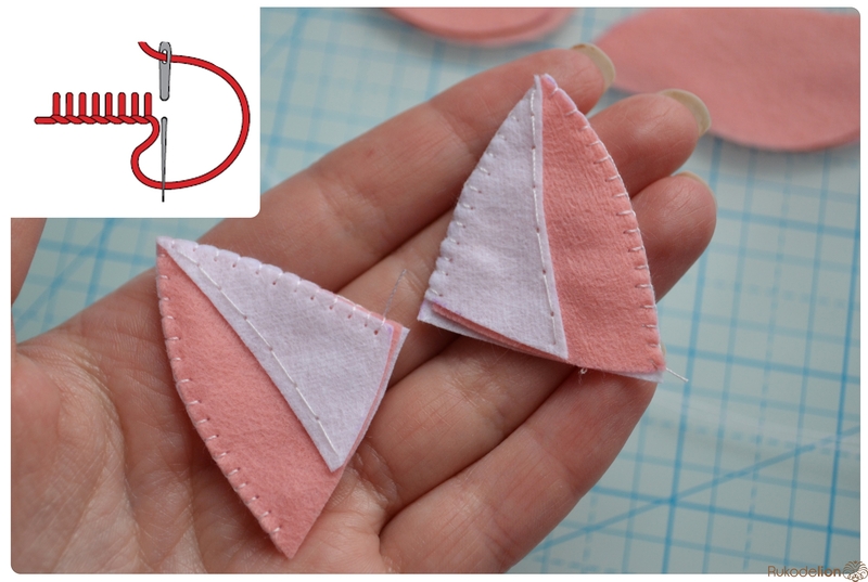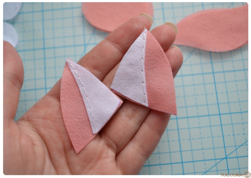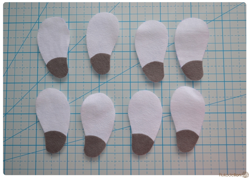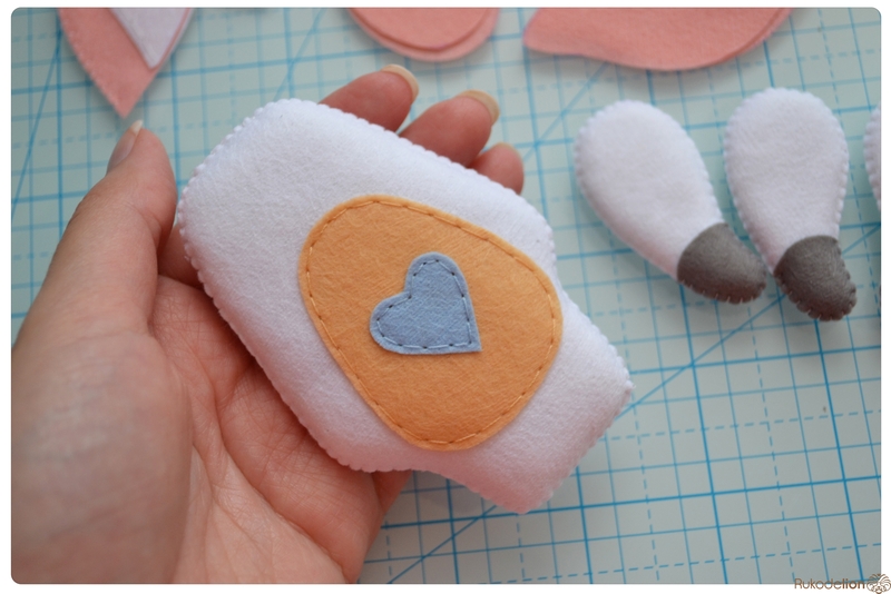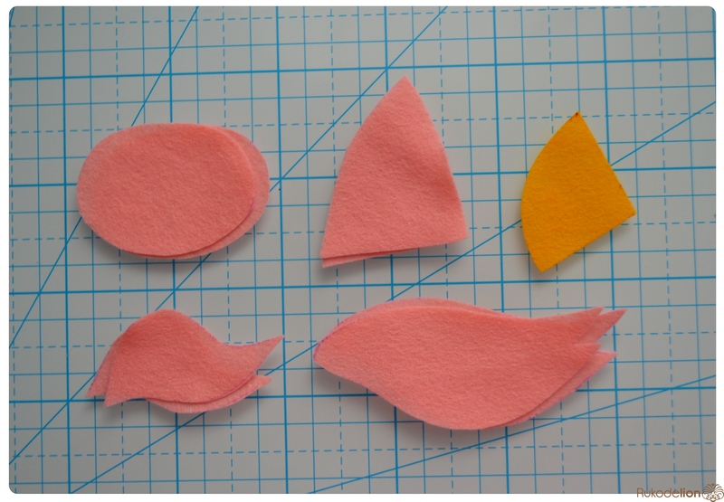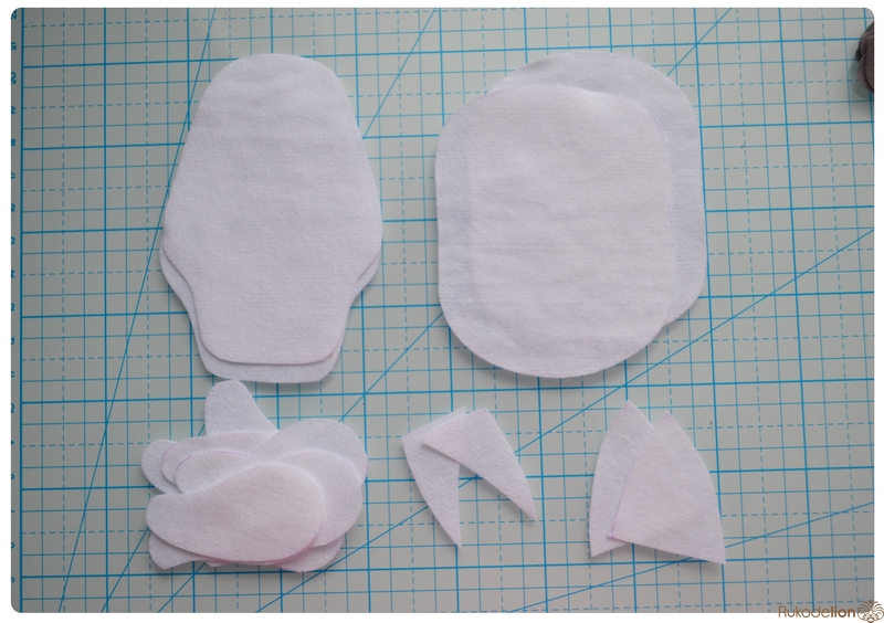 1. Фетр: белый, розовый, голубой, бежевый, серый, желтый. Я буду использовать испанский 100% полиэстеровый мягкий 0,5 мм толщиной фетр.
