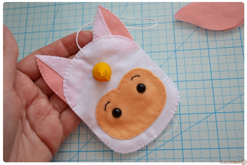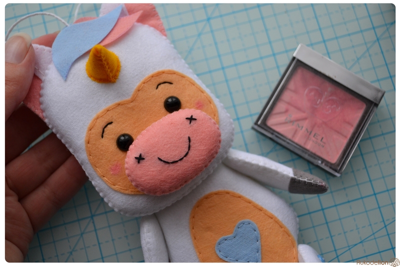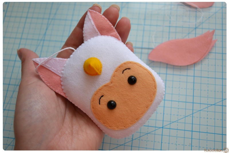 3. Инструменты и прочее: иголка, ножницы, синтепон, румяна, самоисчезающий маркер, клеевой пистолет со стержнем, клей "Момент Кристалл" (либо любой другой ваш любимый текстильный клей), глазки, пуговицы, бубенчик, бусины, кронштейн и декоративный шнурок для подвешивания.