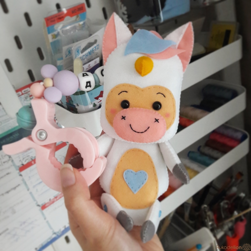 Привет, мои фетровые друзья. Сегодня мы продолжим шить зверят большелобиков. Мы уже сделали подвеску в коляску для мальчика, а сегодня мы порадуем девочек вот таким единорожкой с двигающимися лапками!