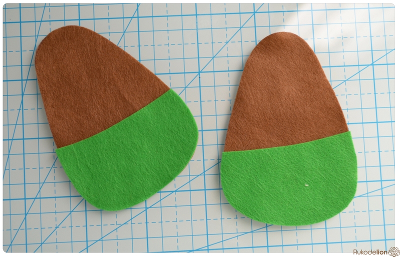 1. Фетр: коричневый, зеленый, бежевый, розовый, красный, черный. Я буду использовать испанский 100% полиэстеровый мягкий 0,5 мм толщиной фетр.