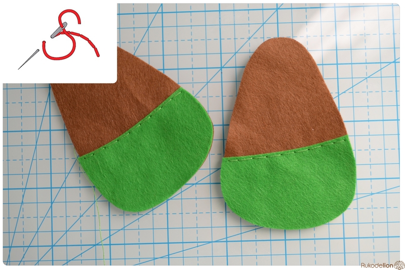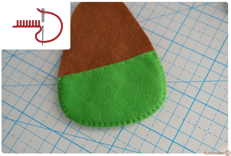 Пришиваем розовый фетр швом "назад иголка" розовыми нитками