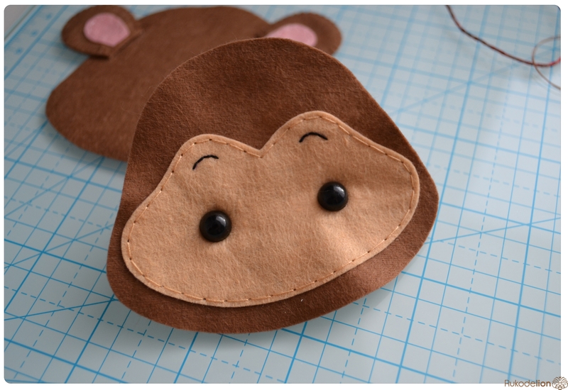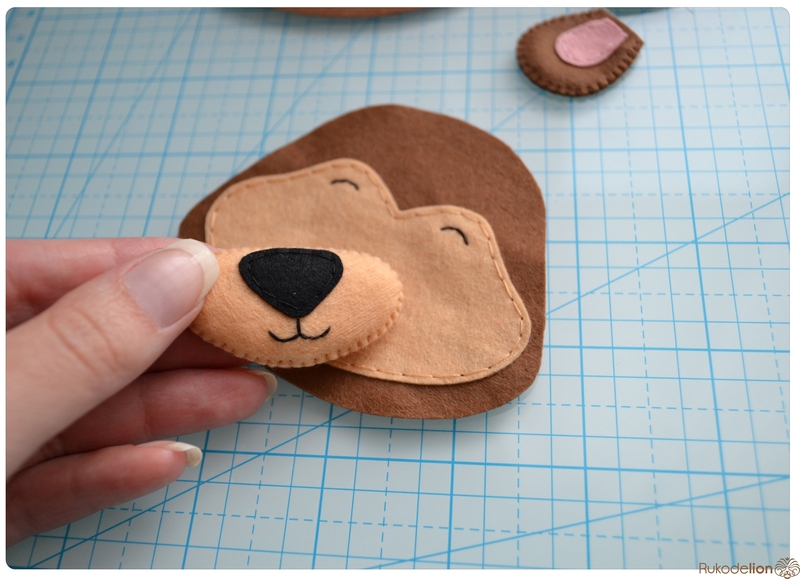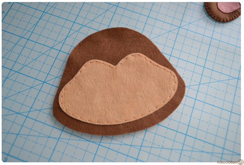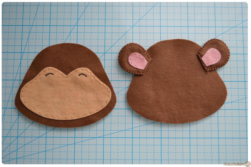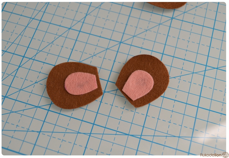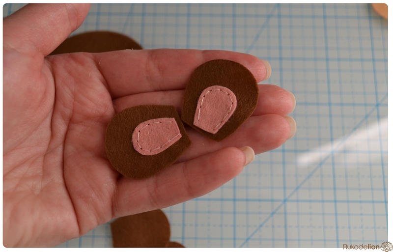 С одной деталью головы мы уже работали, а вот на второй для удобства сшивания зафиксируем капелькой текстильного клея ушки