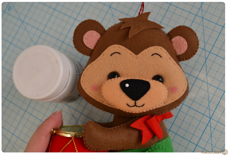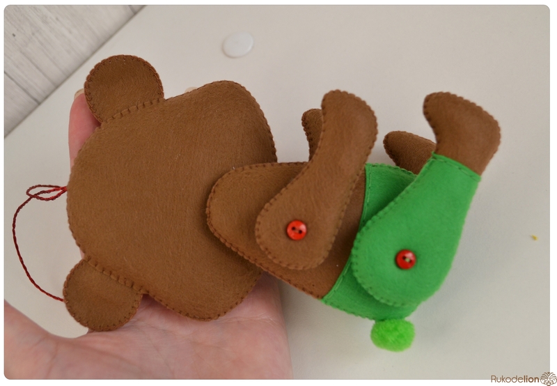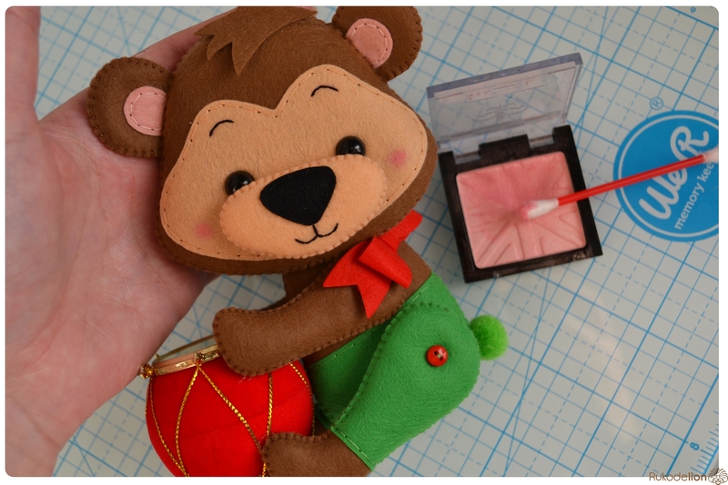 Также я приклеила мишке бантик на шею и решила добавить челочку из фетра