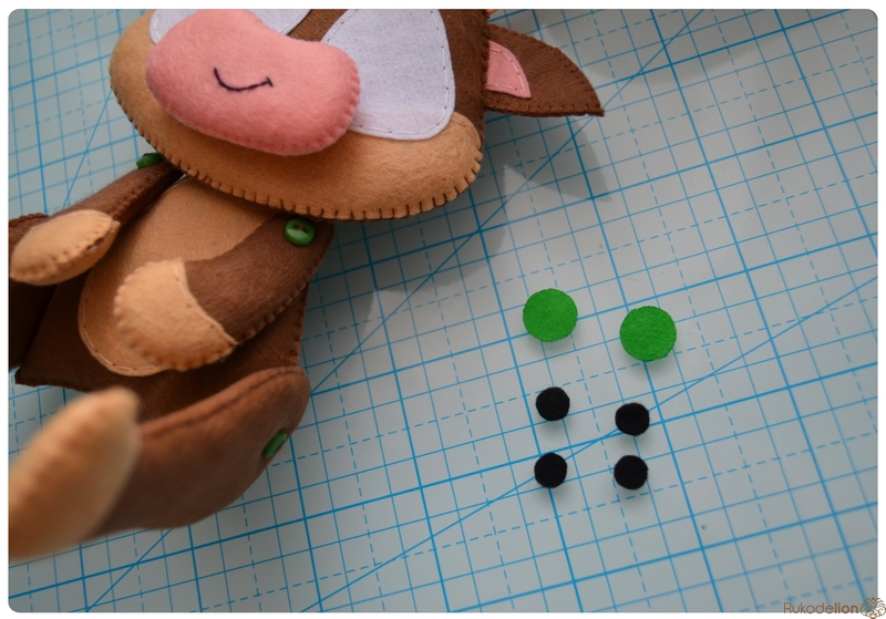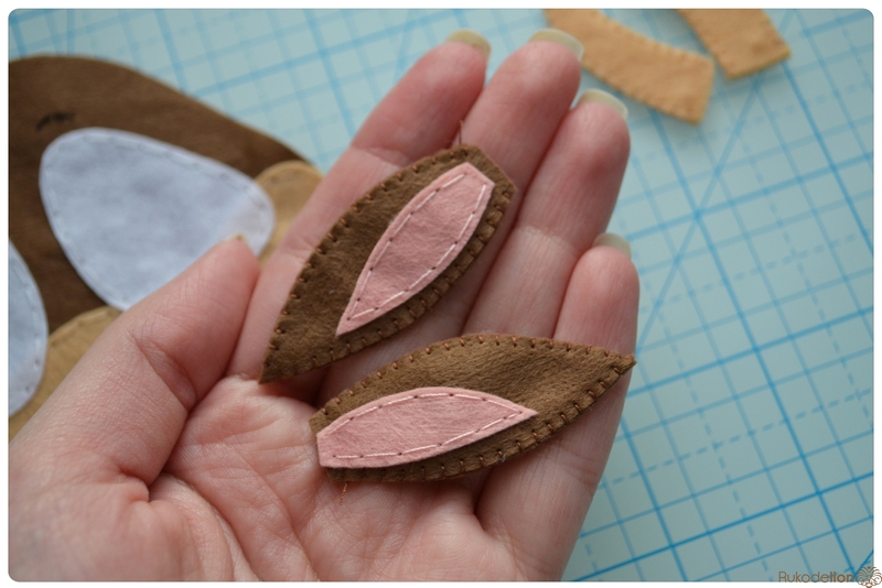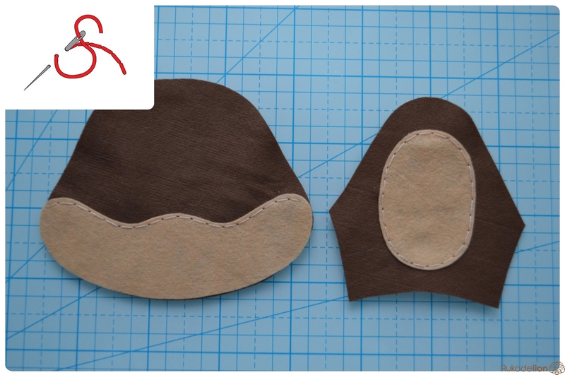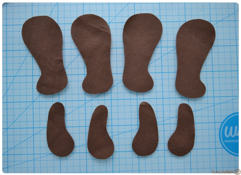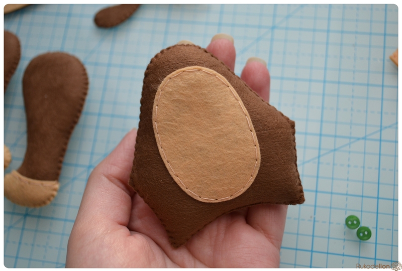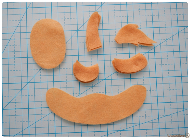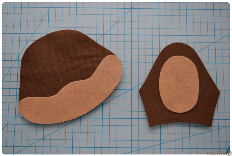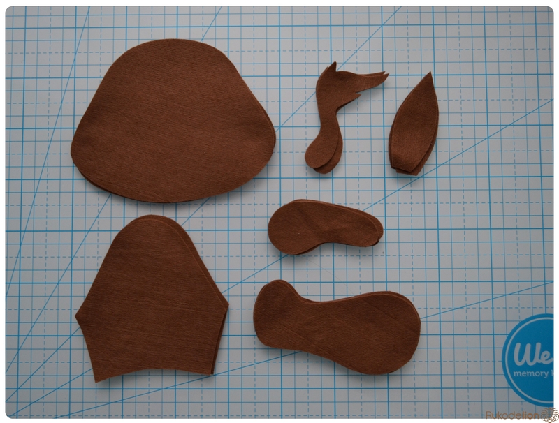 1. Фетр: белый, коричневый, зеленый, черный, бежевый. Я буду использовать испанский 100% полиэстеровый мягкий 0,5 мм толщиной фетр.