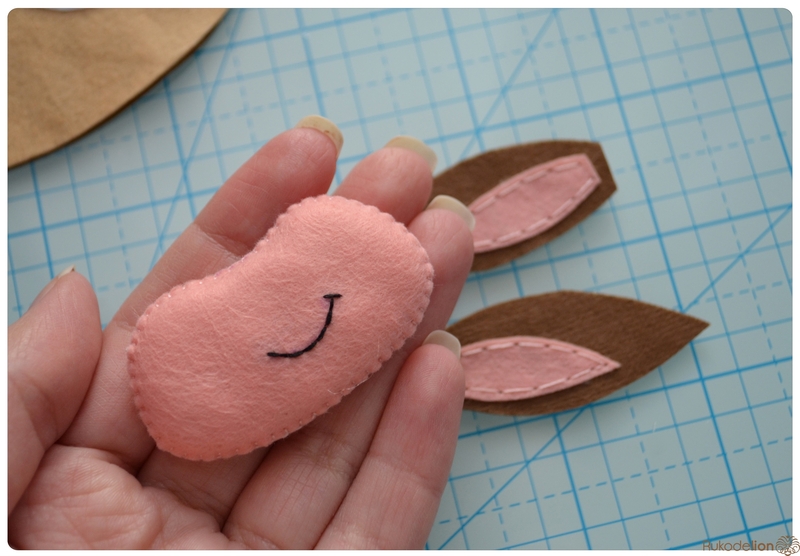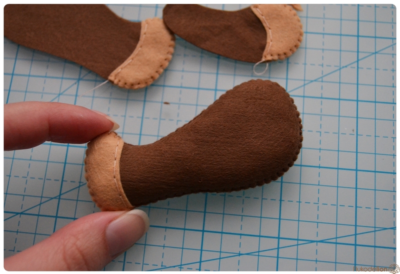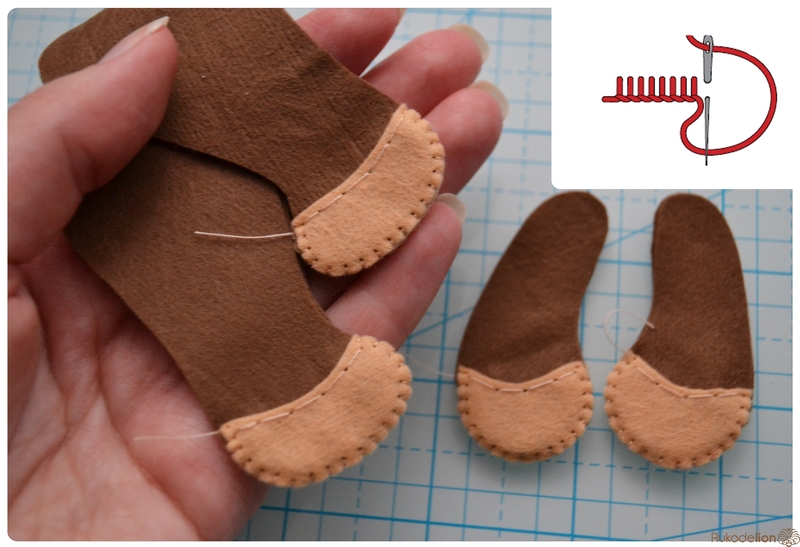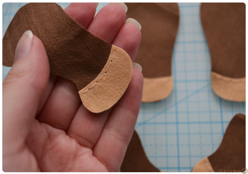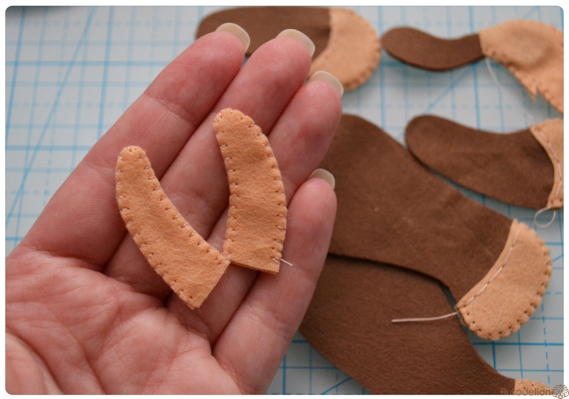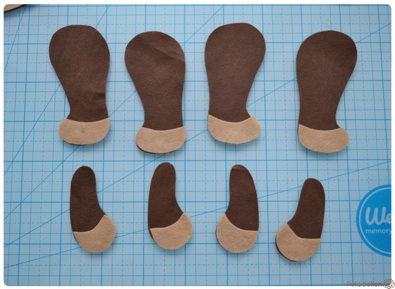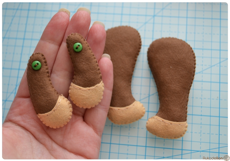 1. Фетр: белый, коричневый, зеленый, черный, бежевый. Я буду использовать испанский 100% полиэстеровый мягкий 0,5 мм толщиной фетр.