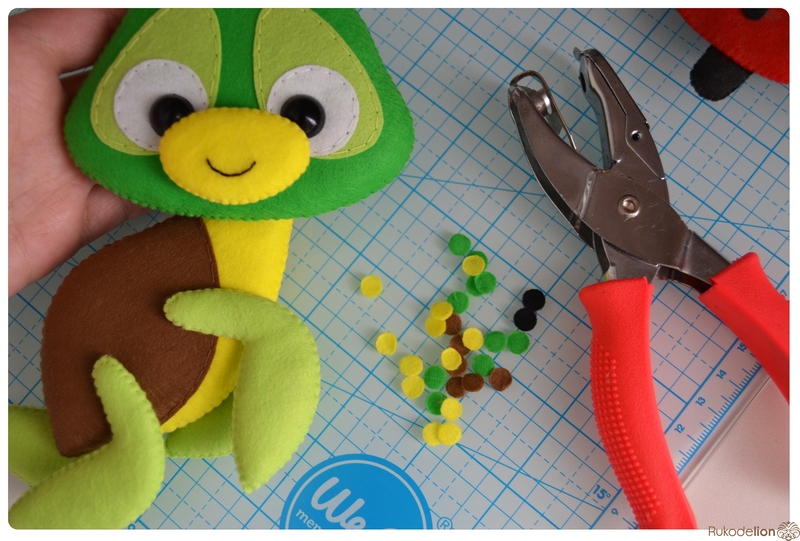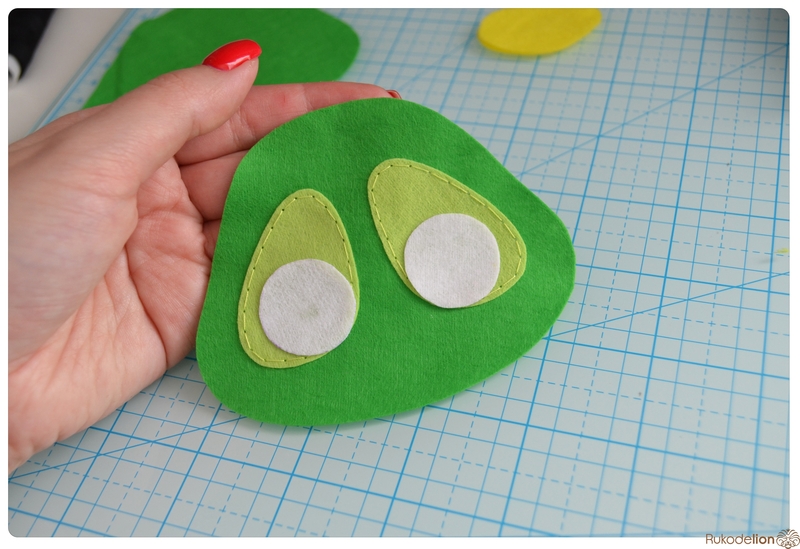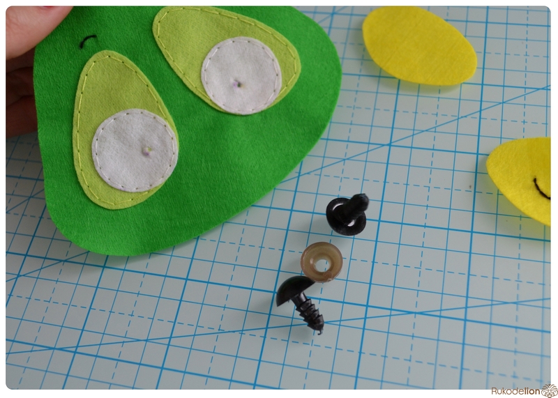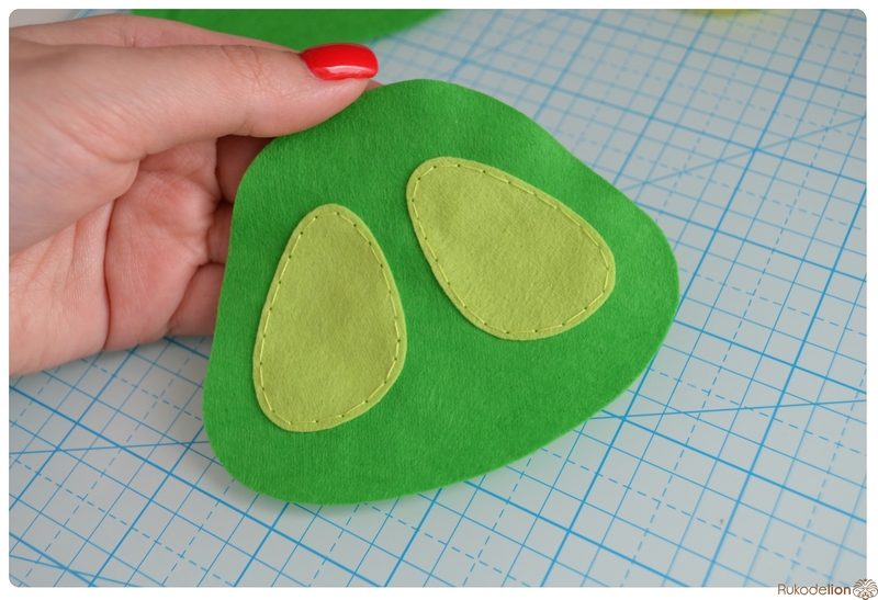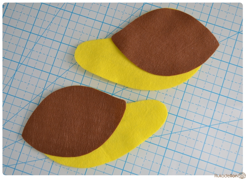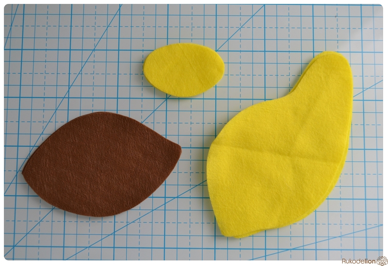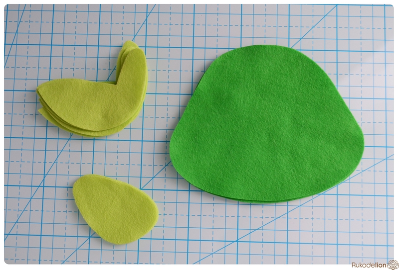 1. Фетр: зеленый, салатовый, желтый, коричневый, черный, белый. Я буду использовать испанский 100% полиэстеровый мягкий 0,5 мм толщиной фетр.