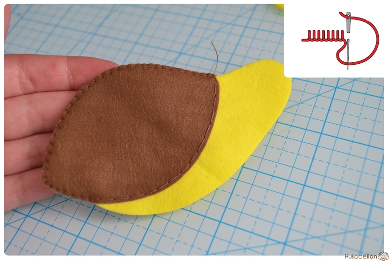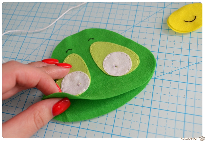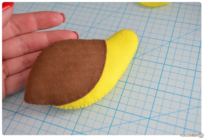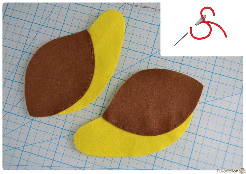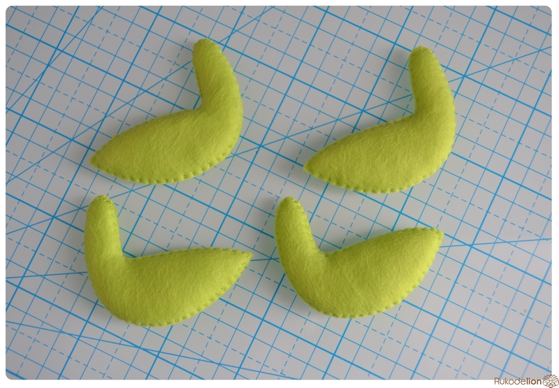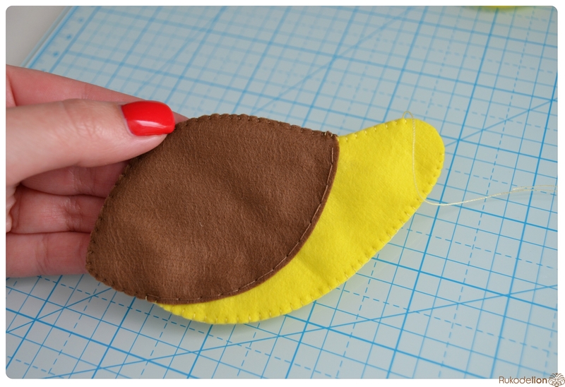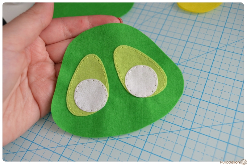 1. Фетр: зеленый, салатовый, желтый, коричневый, черный, белый. Я буду использовать испанский 100% полиэстеровый мягкий 0,5 мм толщиной фетр.