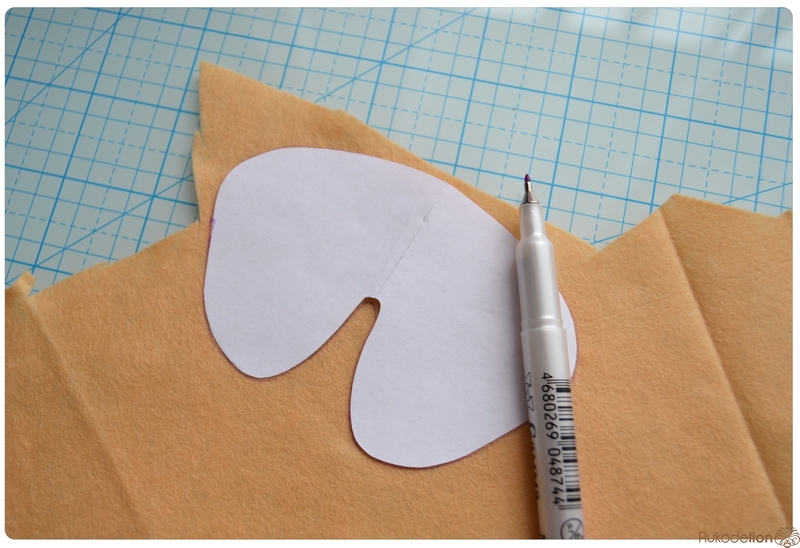 Самоисчезающим маркером обводим детали выкройки на фетре