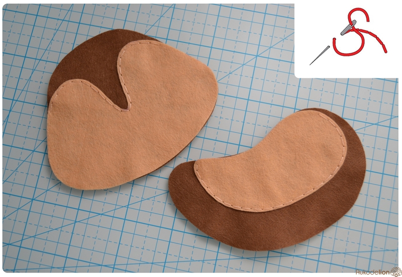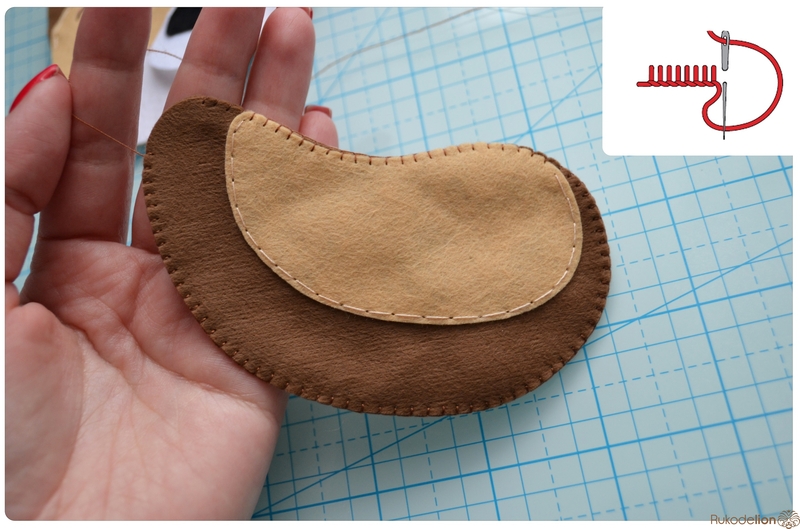 Пришиваем бежевые детали бежевыми нитками швом "назад иголка", как это показано на схеме