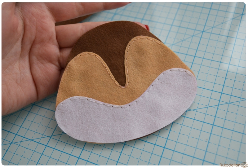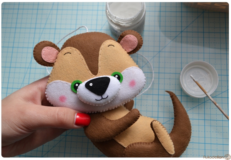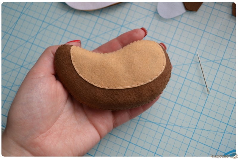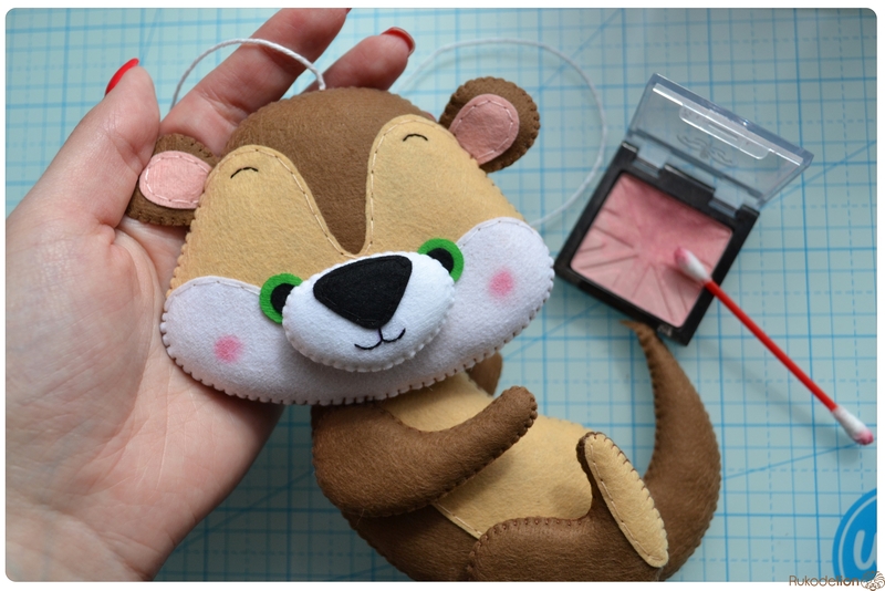 Таким же образом сшиваем и набиваем синтепоном и мордочку выдры