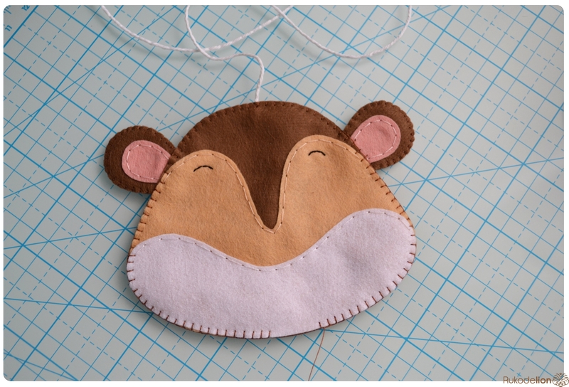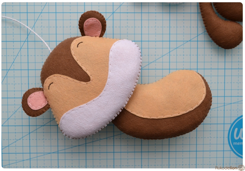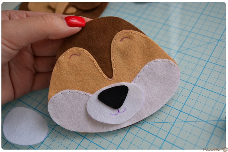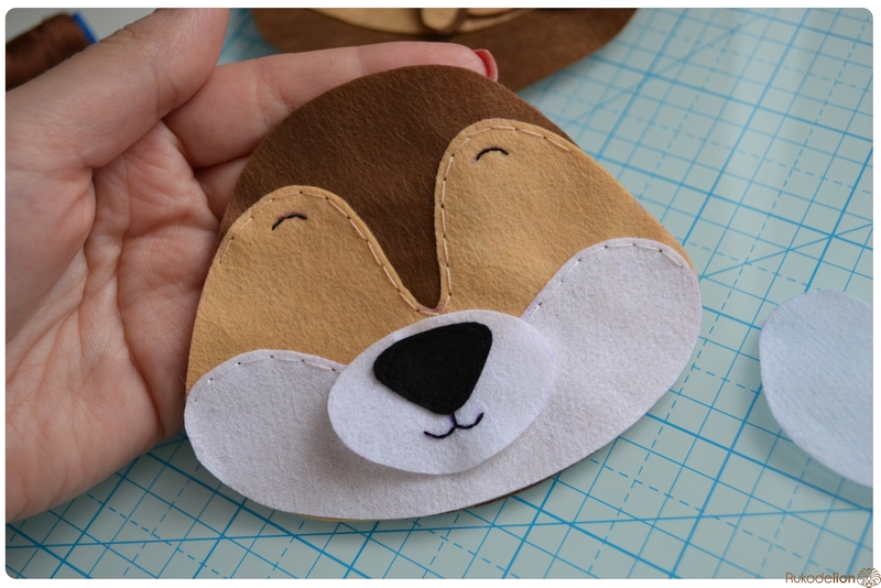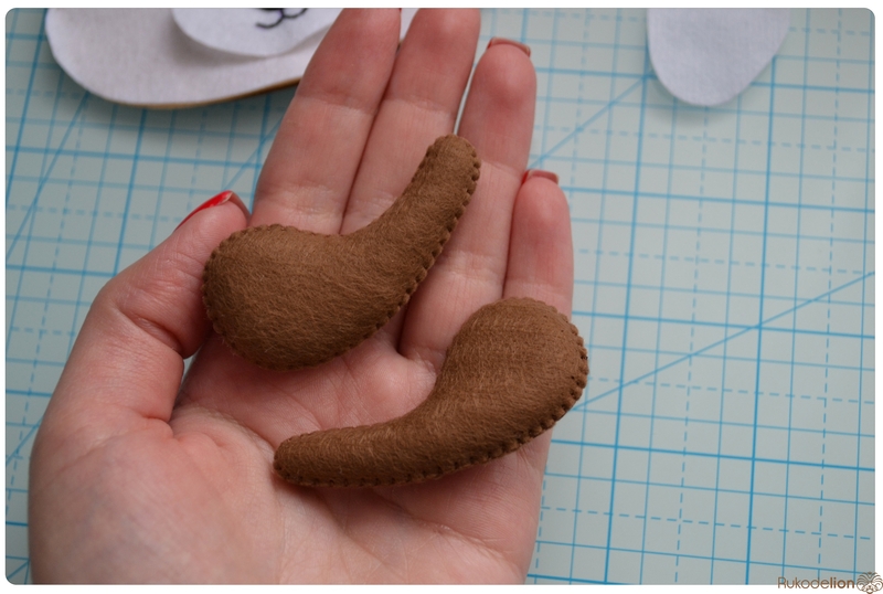 Пришиваем носик черными нитками швом "назад иголка", а нарисованные линии вышиваем тем же швом, но двойной ниткой