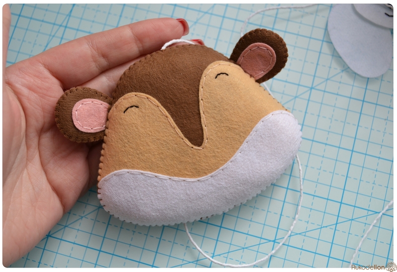1. Фетр: коричневый, бежевый, белый, черный, зеленый, розовый. Я буду использовать испанский 100% полиэстеровый мягкий 0,5 мм толщиной фетр.