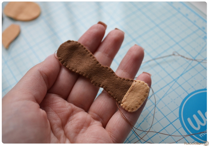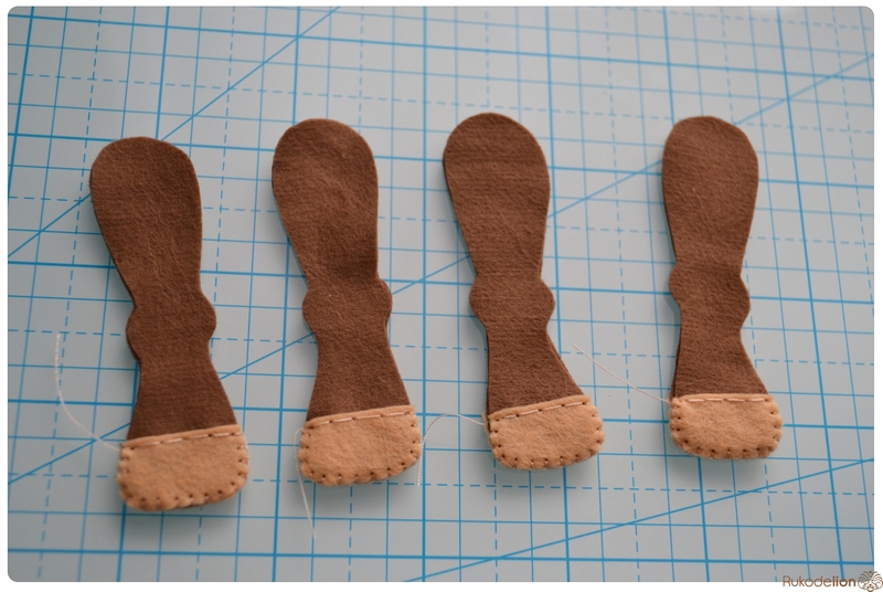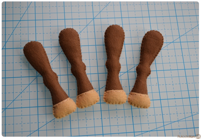 Складываем лапки по парам и петельным швом сшиваем только копытца