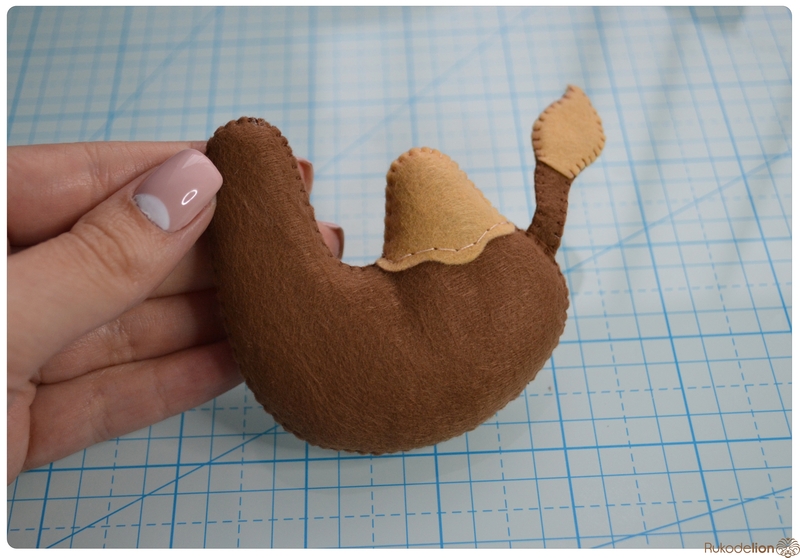 Перед тем как сшивать хвостик, приложите бежевые кончики к деталям хвоста