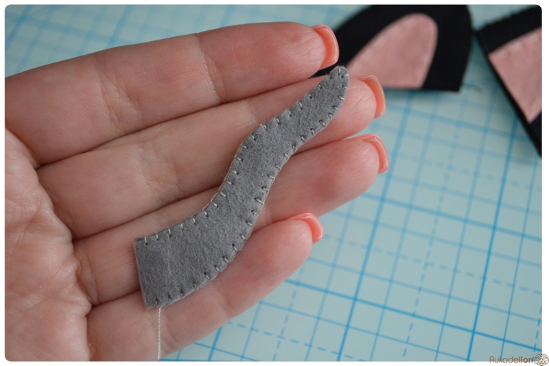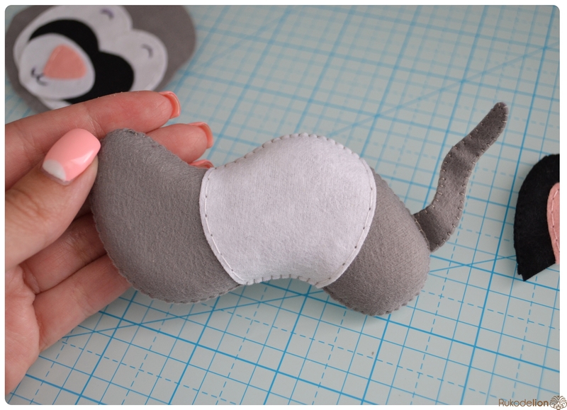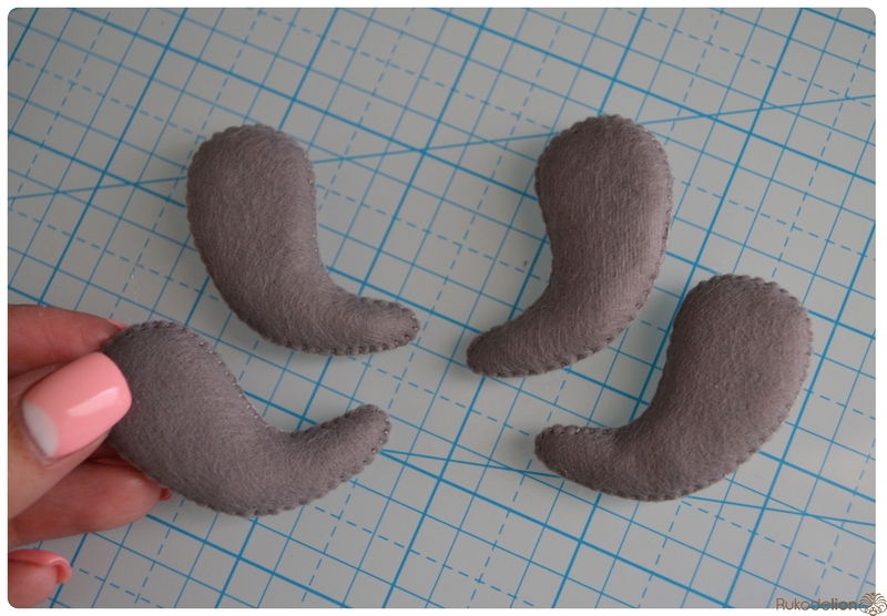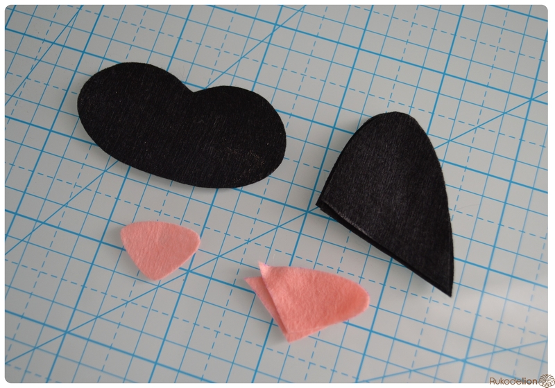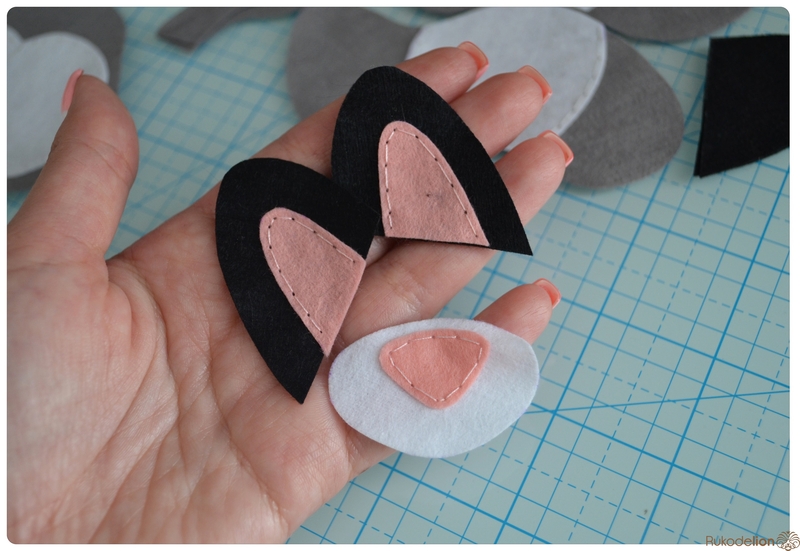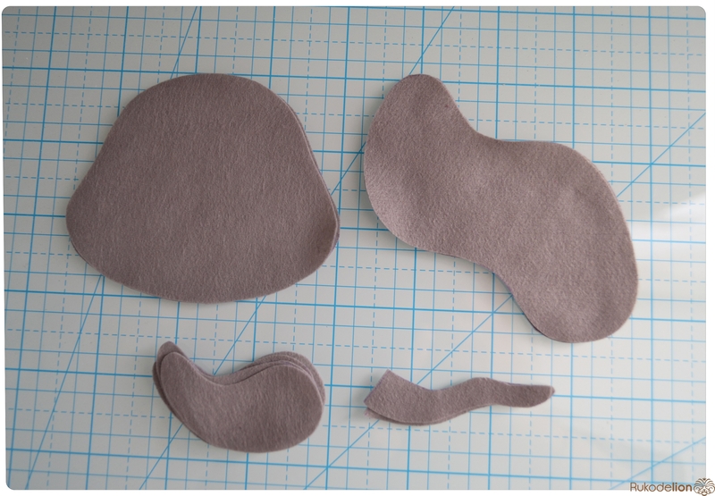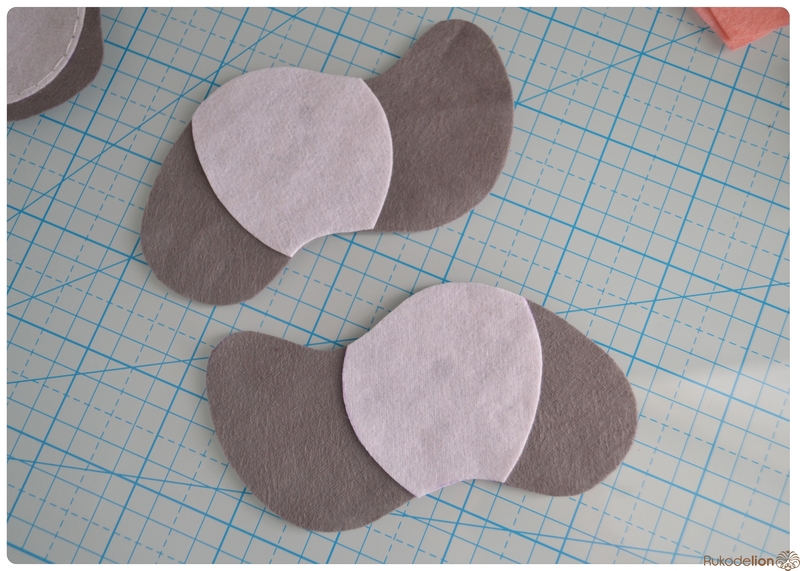 1. Фетр: серый, белый, черный, зеленый и розовый. Я буду использовать испанский 100% полиэстеровый мягкий 0,5 мм толщиной фетр.