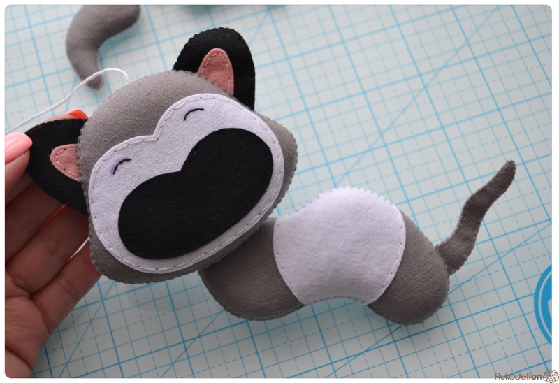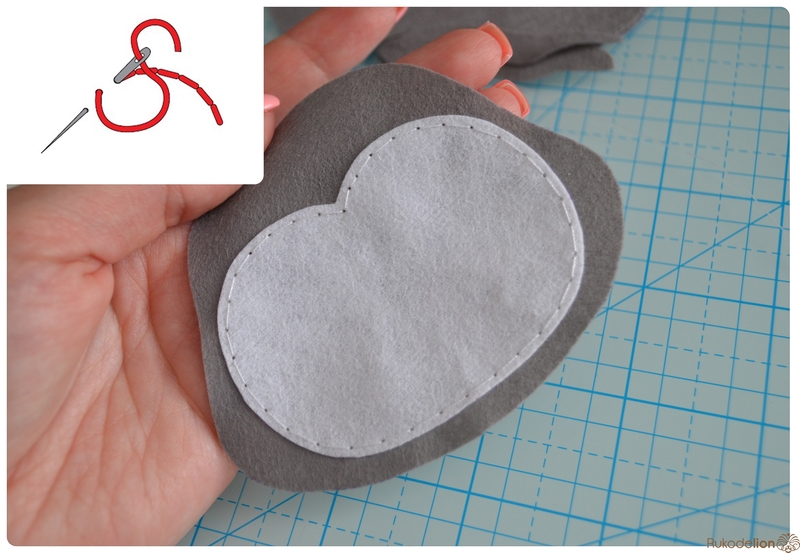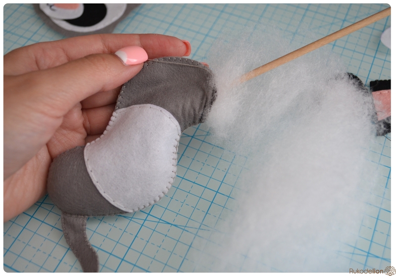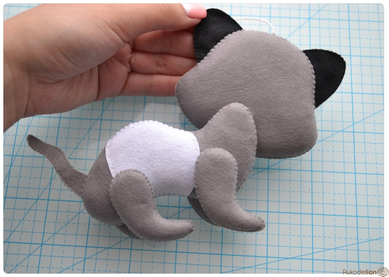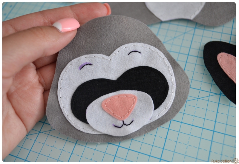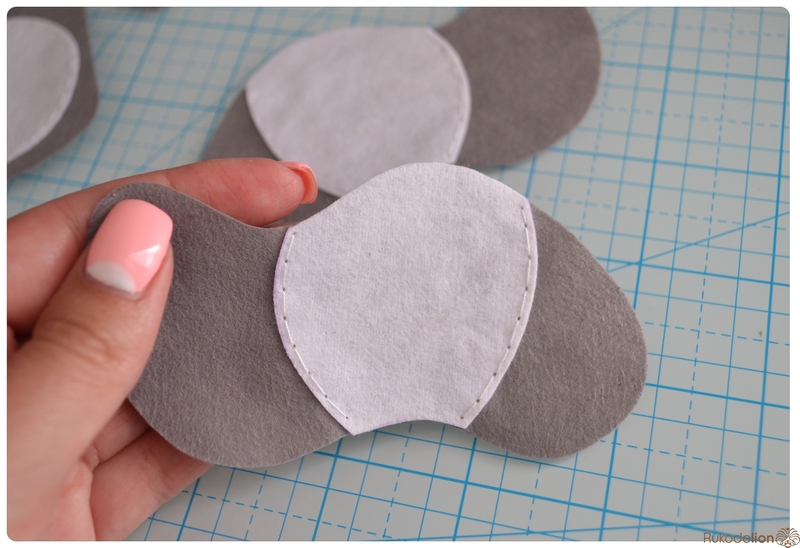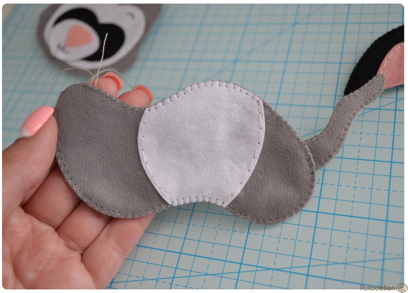 1. Фетр: серый, белый, черный, зеленый и розовый. Я буду использовать испанский 100% полиэстеровый мягкий 0,5 мм толщиной фетр.