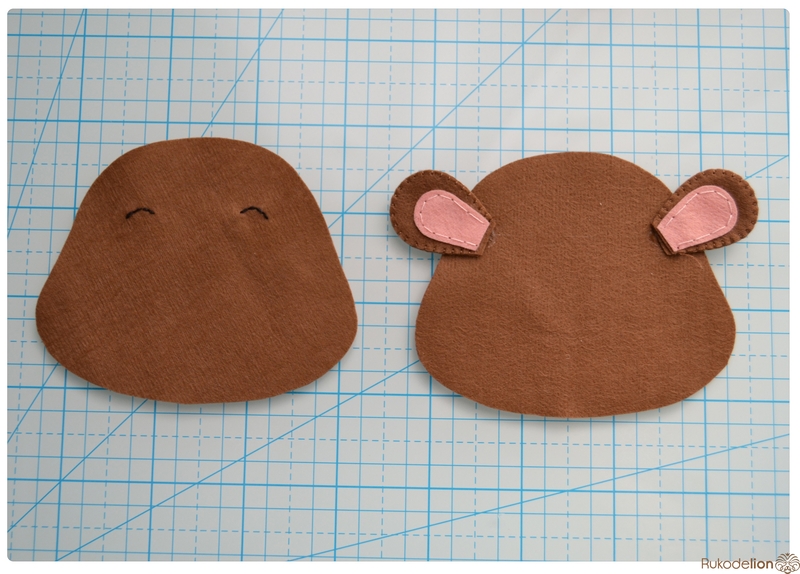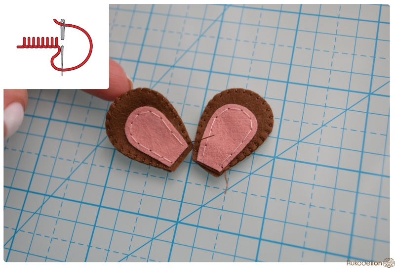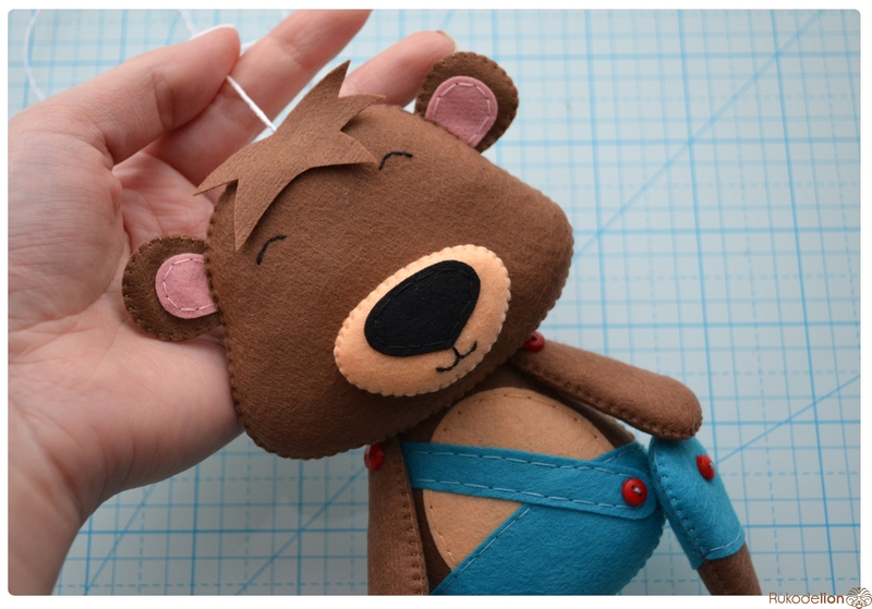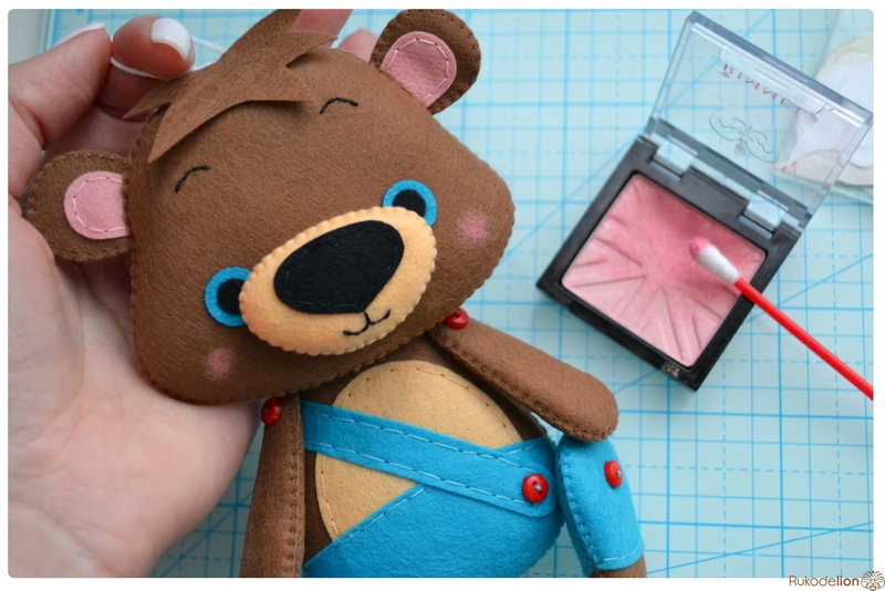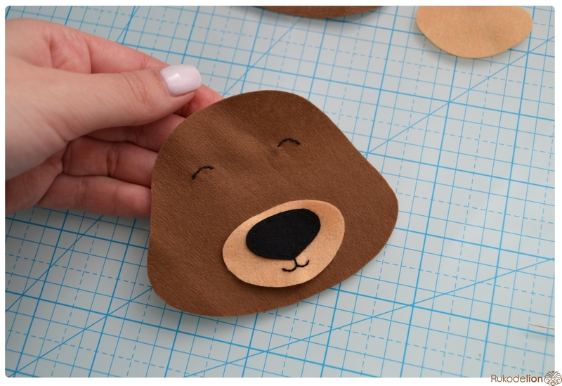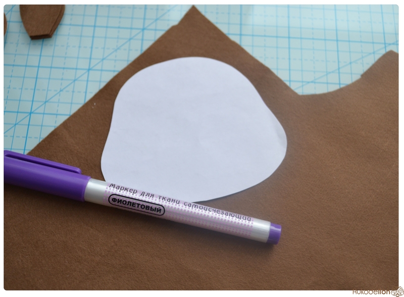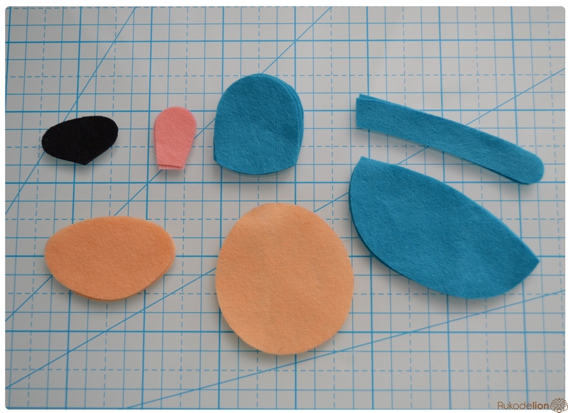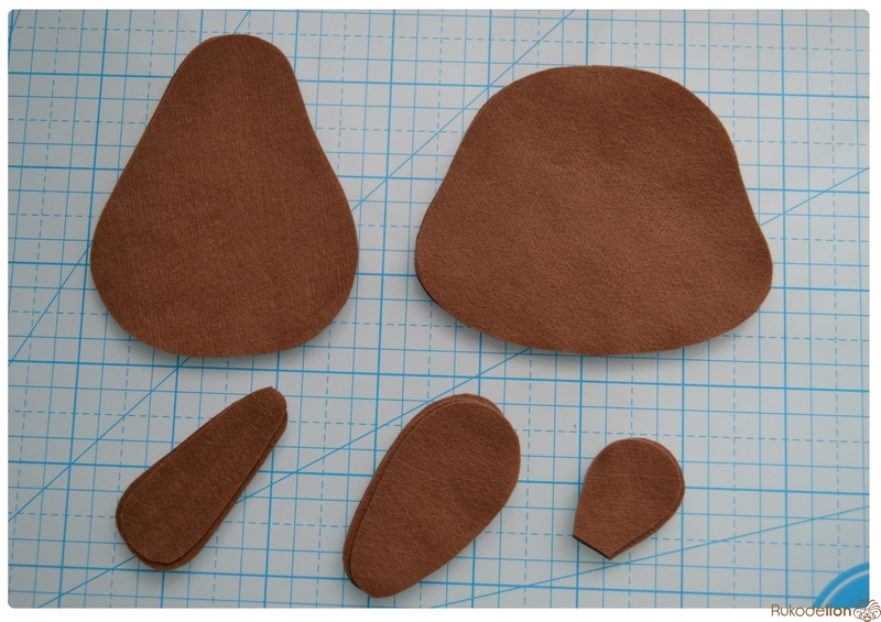 1. Фетр: коричневый, черный, синий, бежевый, розовый. Я буду использовать испанский 100% полиэстеровый мягкий 0,5 мм толщиной