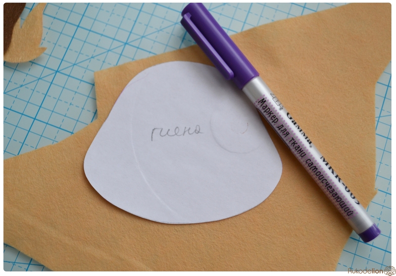 3. Инструменты и прочее: иголка, ножницы, синтепон, клеевой пистолет со стержнем, клей "Момент Кристалл" (либо любой другой ваш любимый текстильный клей), шнурок для подвешивания, самоисчезающий маркер , румяна, белая краска по ткани