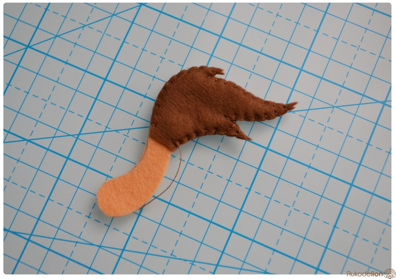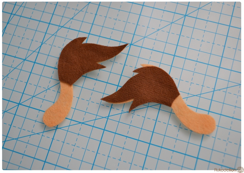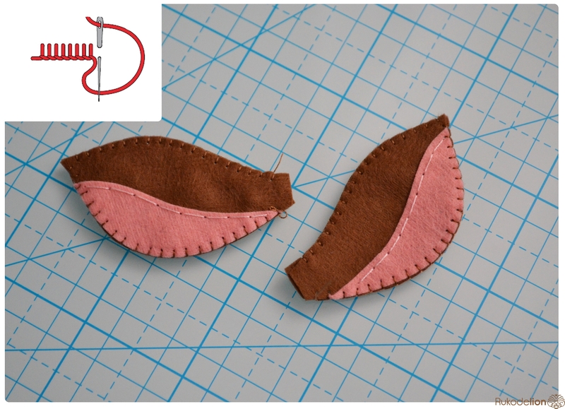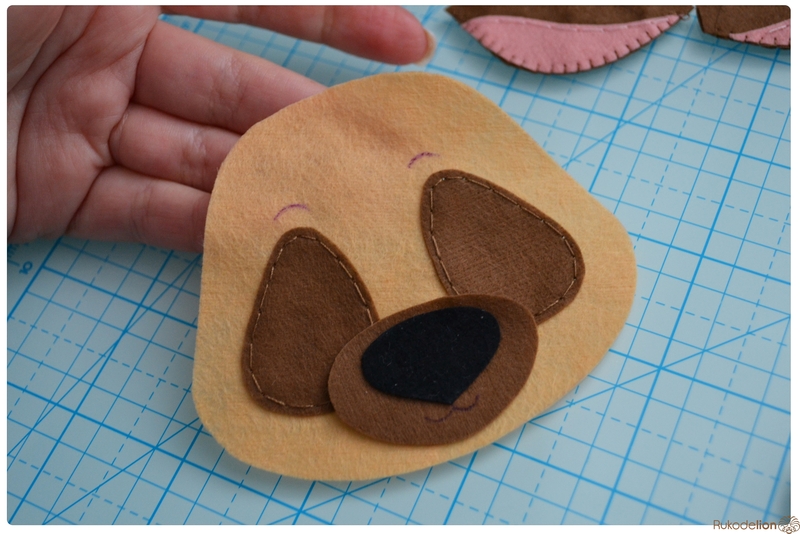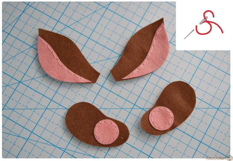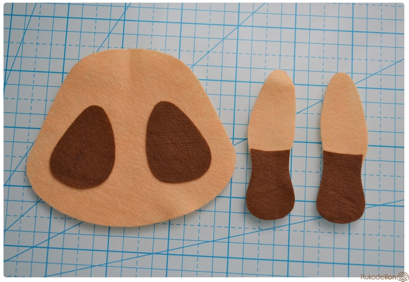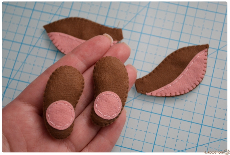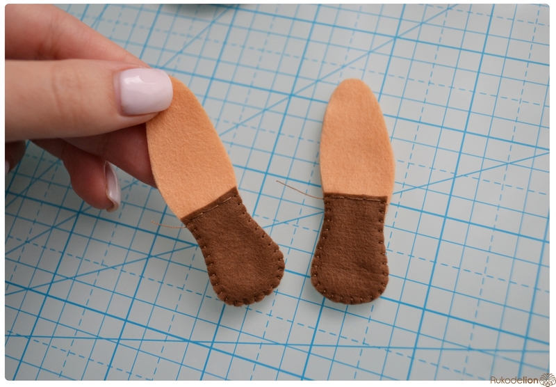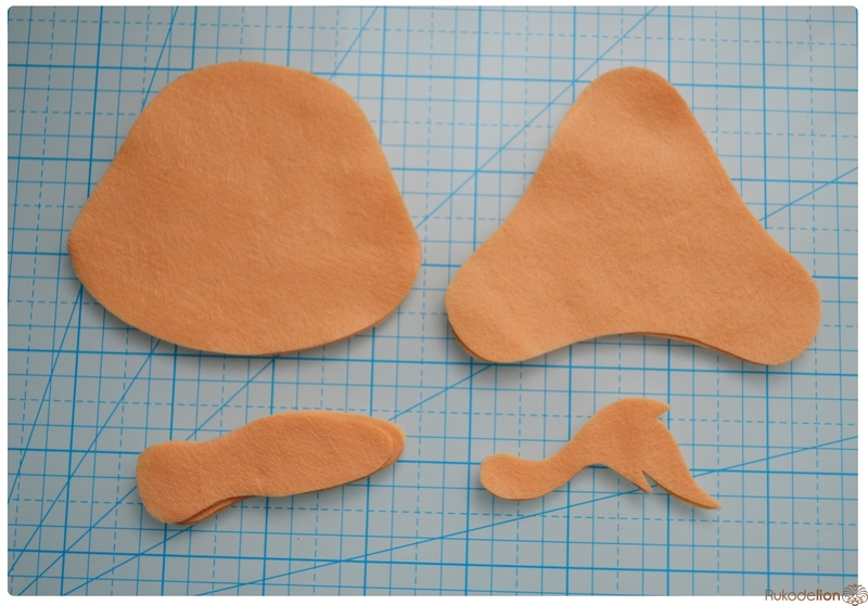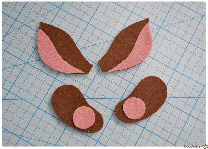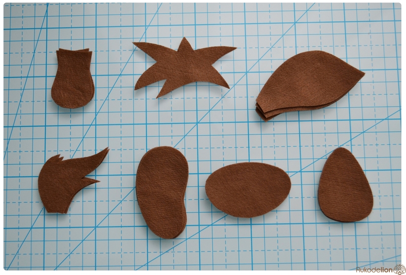 1. Фетр: бежевый, коричневый, черный, зеленый, розовый. Я буду использовать испанский 100% полиэстеровый мягкий 0,5 мм толщиной фетр.