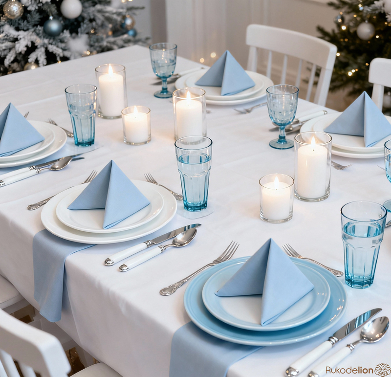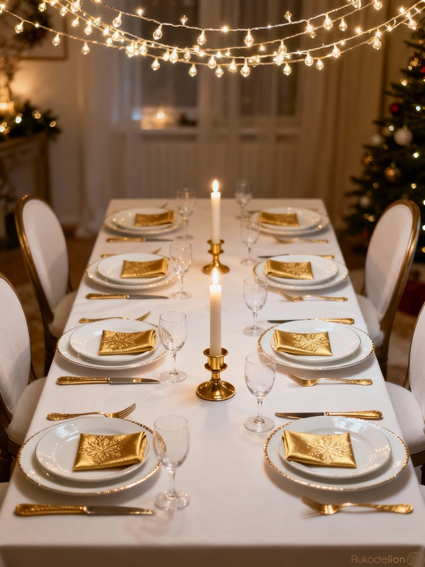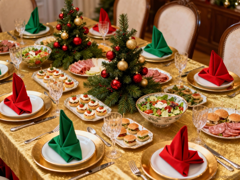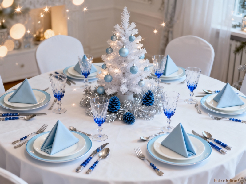 Цветовая гамма сервировки может полностью изменить настроение праздника. Классическое сочетание красного, золотого и зеленого создает атмосферу традиционного Нового года. Элегантный бело-серебристый ансамбль напоминает о зимней сказке и инее. Современные тренды предлагают глубокие синие или фиолетовые тона с медными акцентами. Не бойтесь экспериментировать: бордовый, изумрудный или даже черный с яркими вспышками могут выглядеть невероятно стильно.