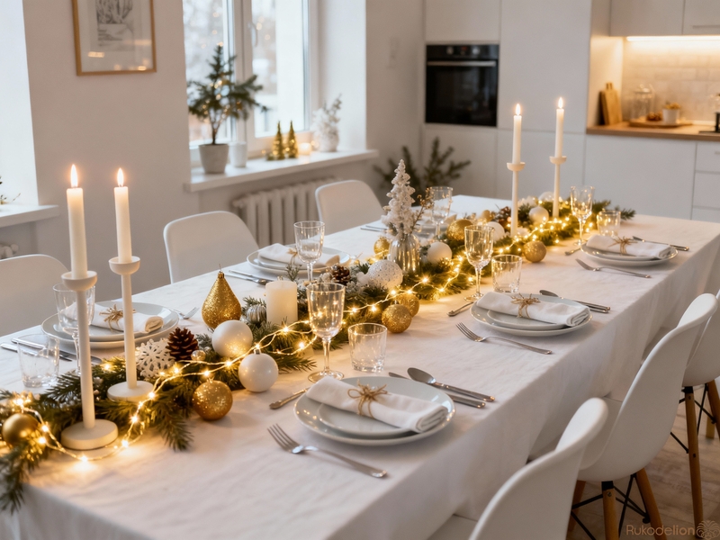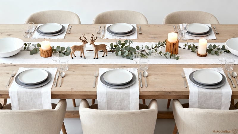 Скандинавская сервировка новогоднего стола требует натуральных материалов и минималистичной посуды для создания уюта. Основные элементы включают льняные текстильные изделия, матовую керамику и деревянные акценты.