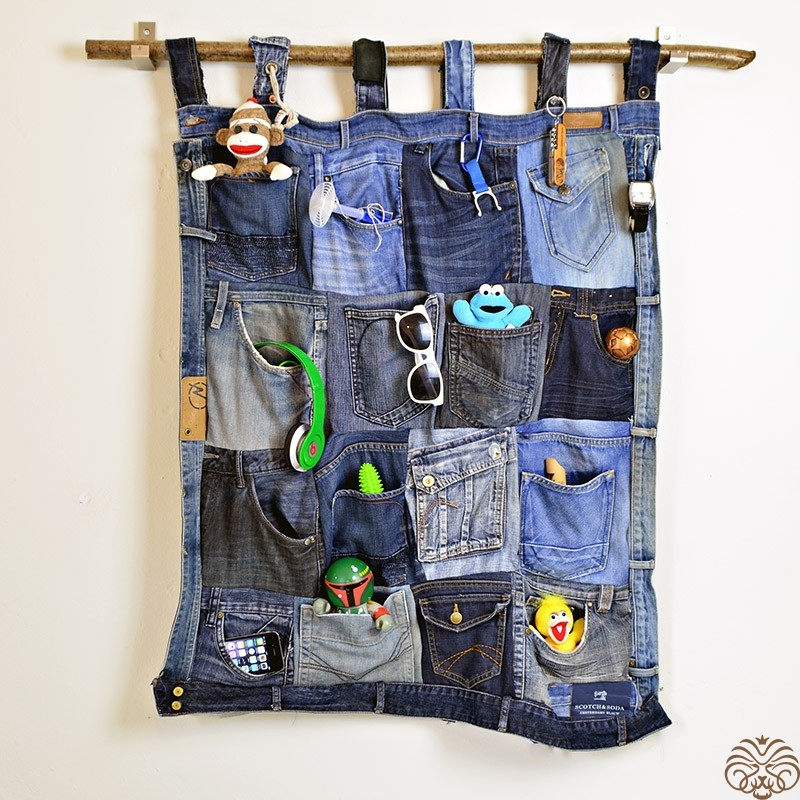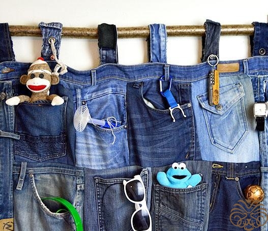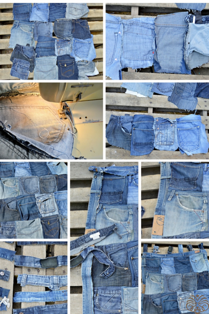 1. Вырежьте из джинсов карманы, не забудьте учесть края швов. Для данного органайзера мы использовали 16 карманов спереди и сзади.