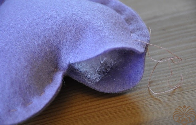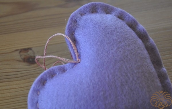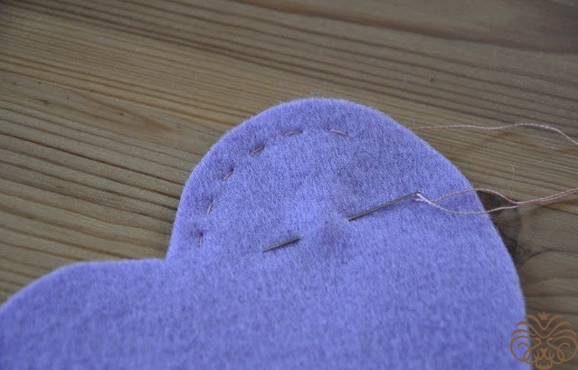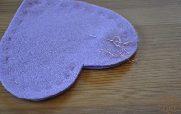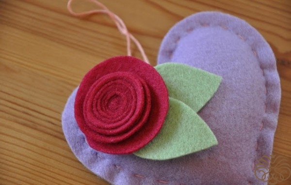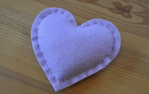 Чтобы сделать такой вот подарок в виде сердечка с цветком, необходимо взять войлок лилового цвета для сердечка и малинового цвета для сердечка.