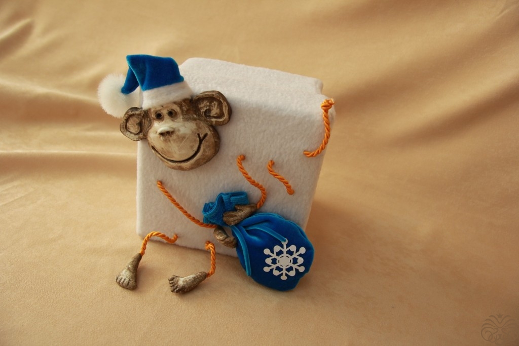 Подарочная коробка выполненная в образе символа наступающего года, обезьянке.