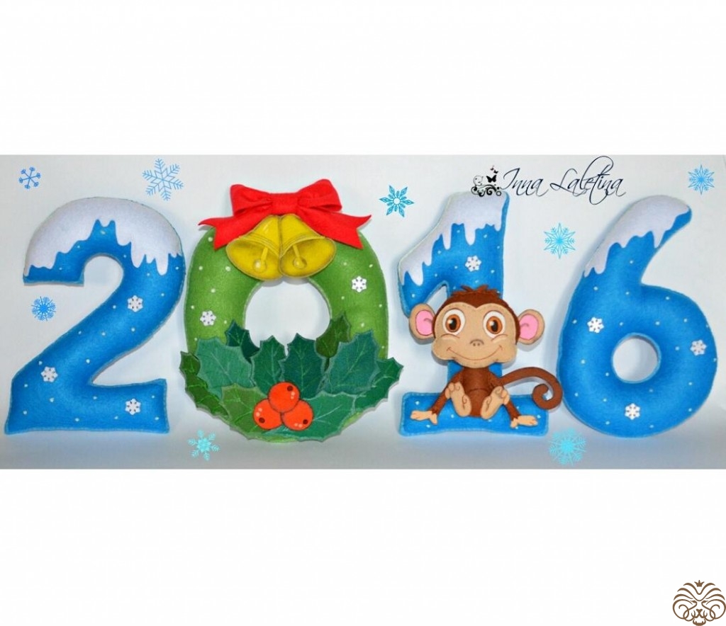 Новогодняя гирлянда из фетра, высота цифр 20см.