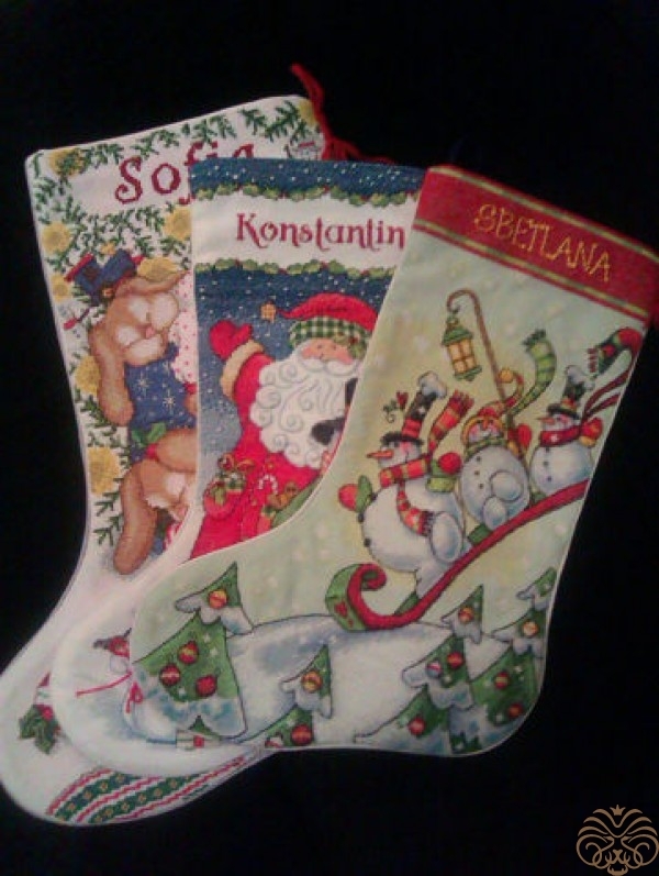 Вышитые новогодние сапожки