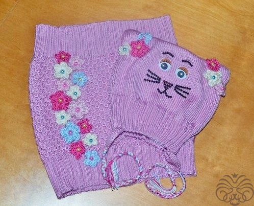 4. Аналогично вяжем шапочку. Делаем разбор на резинку 2х2, 140 петель (70-0-70) в работе,вяжем 34 ряда резинки. Переносим петли на переднюю фонтуру,меняем мост. Вяжем 70 рядов кулирной гладью, закрываем петли, снимаем полотно.
