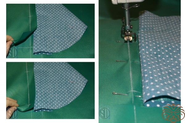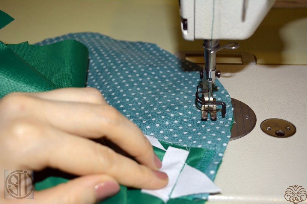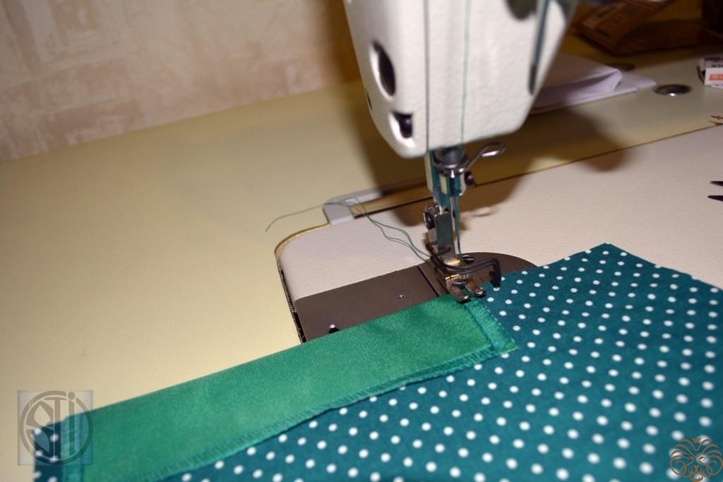 - соединить листочку с верхней подкладкой машинной строчкой швом шириной 5мм;
