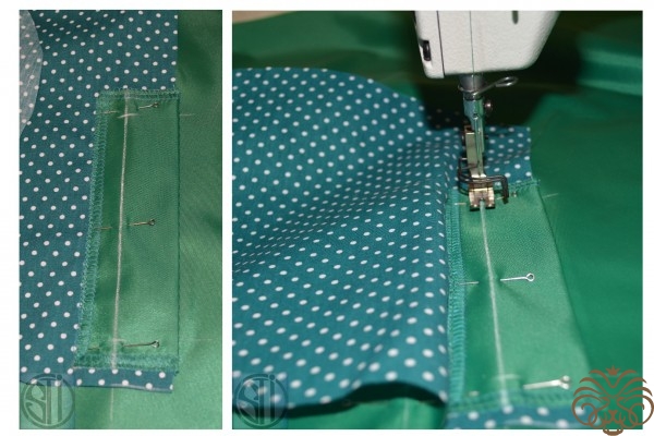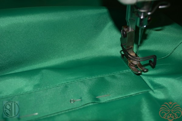 - расправляя подкладку (чтобы не зашить ее!) выполняем отделочную строчку по шву притачивания листочки.