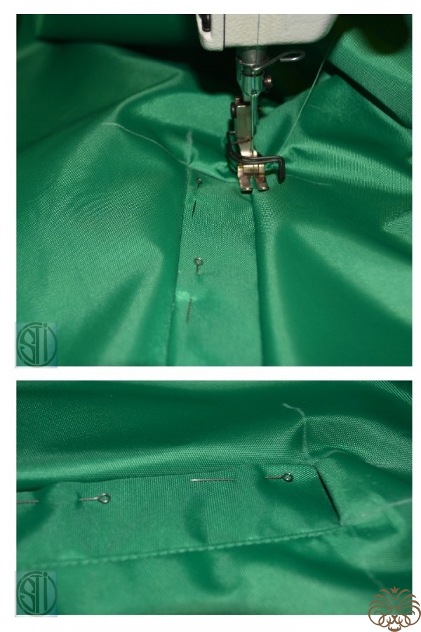 - выполняем отделочную строчку по концам кармана и шву притачивания нижней части подкладки.