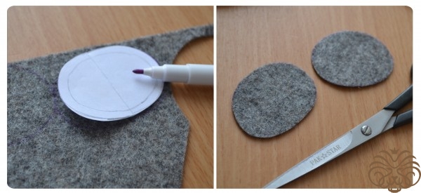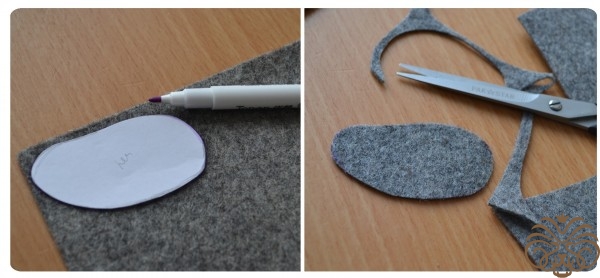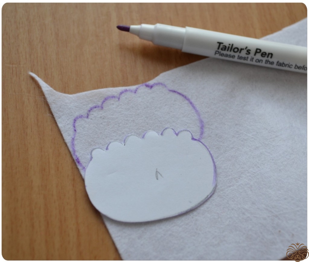 На фетре цвета меланж самоисчезающим маркером обводим деталь головы 2 раза и вырезаем