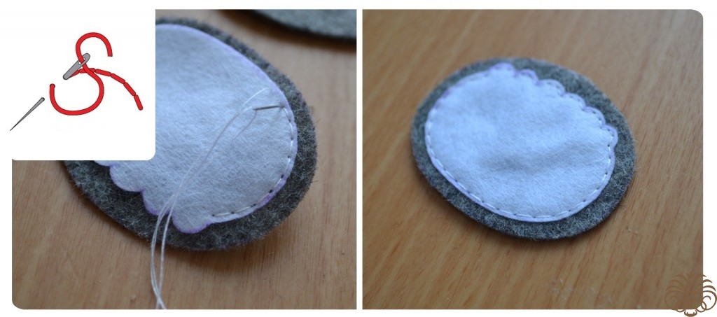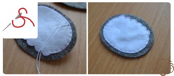 Швом "назад иголка" пришиваем мордочку к вырезанной детали головы как это показано на схеме