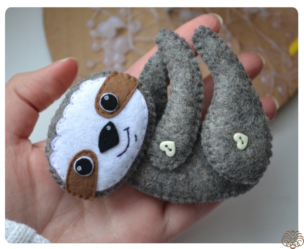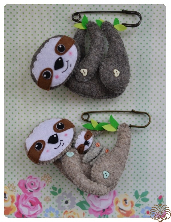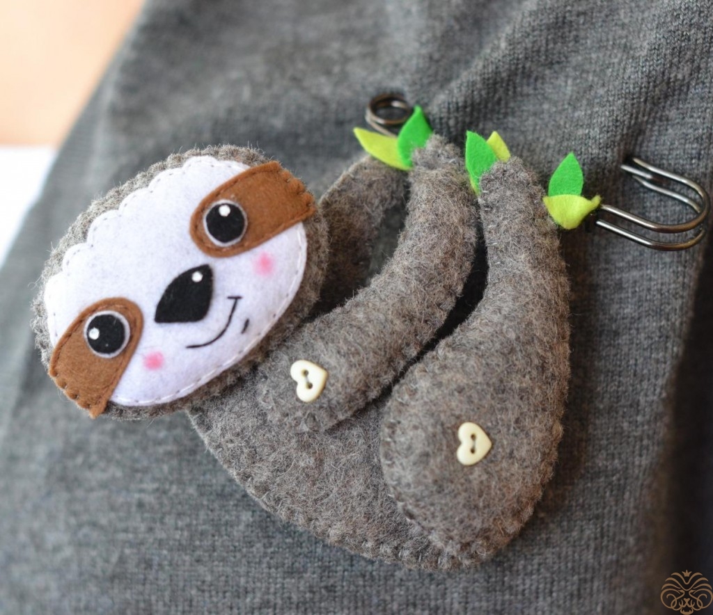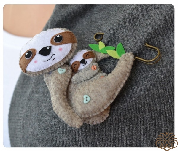Чудесная брошка с ленивцем из натурального 100% шерстяного фетра. Две брошки по одной выкройке