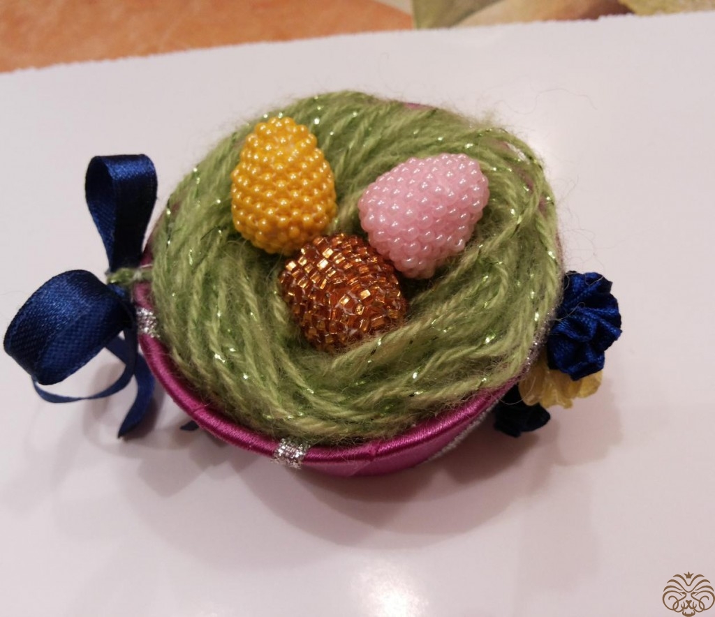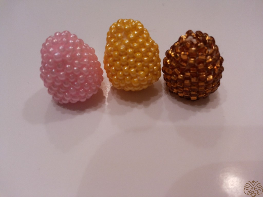 20 последний ряд состоящий из 4 бисерин, которые проплетаем и стягиваем их, закрепляем нить. Яйцо готово!