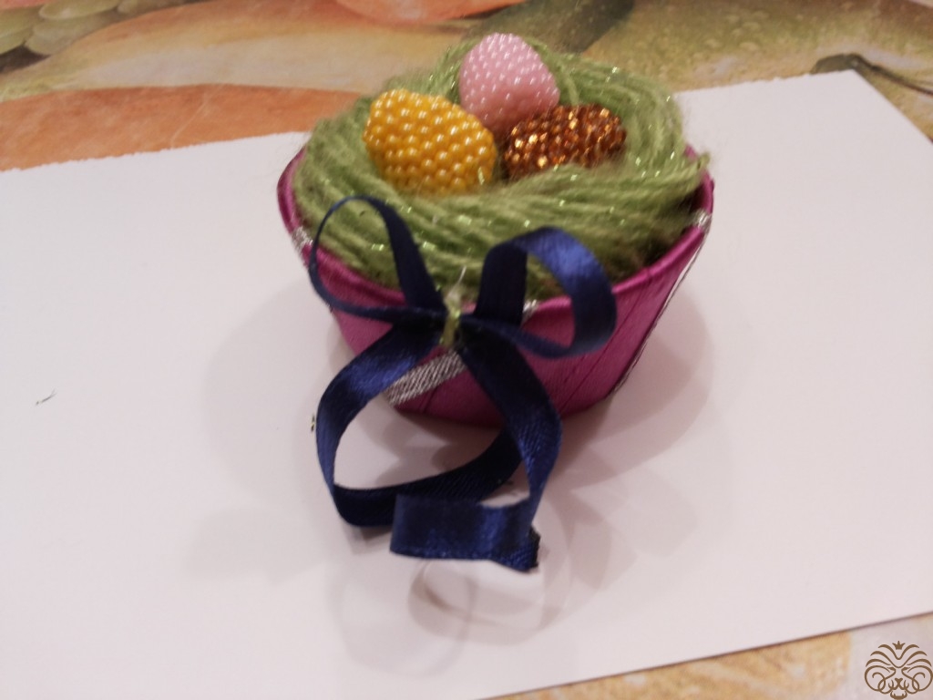 18 ряду должно получиться 8 бисерин, после набиваем почти готовое яйцо ватой.