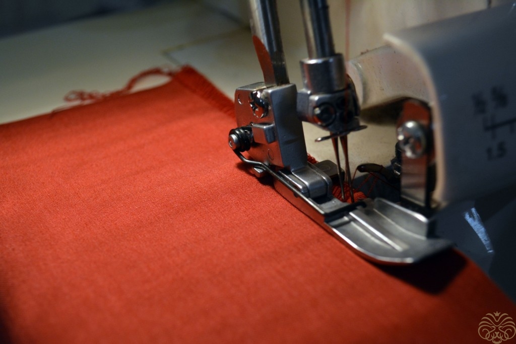 8. Для стачивания бокового шва можно воспользоваться специальной лапки. Стачиваем как удобно, либо с низу бокового шва, двигаясь ко шву втачивания молнии, либо начинаем от молнии.
