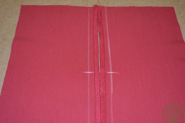 2. Чертим линии для притачивания молнии, а также определяем длину застежки поперечными коротенькими линиями