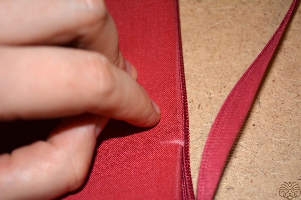 11. От оставшегося хвоста обрезаем кусочек тесьмы
