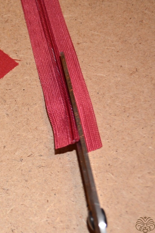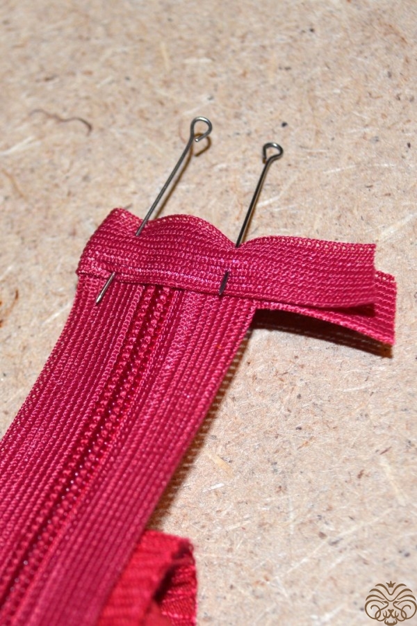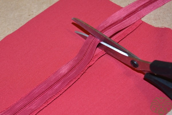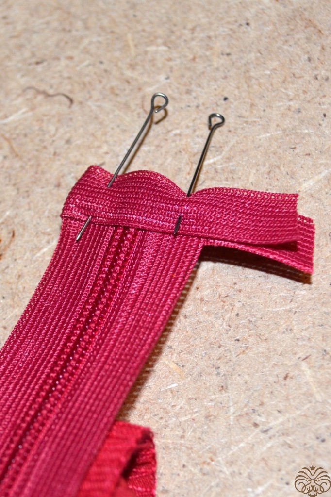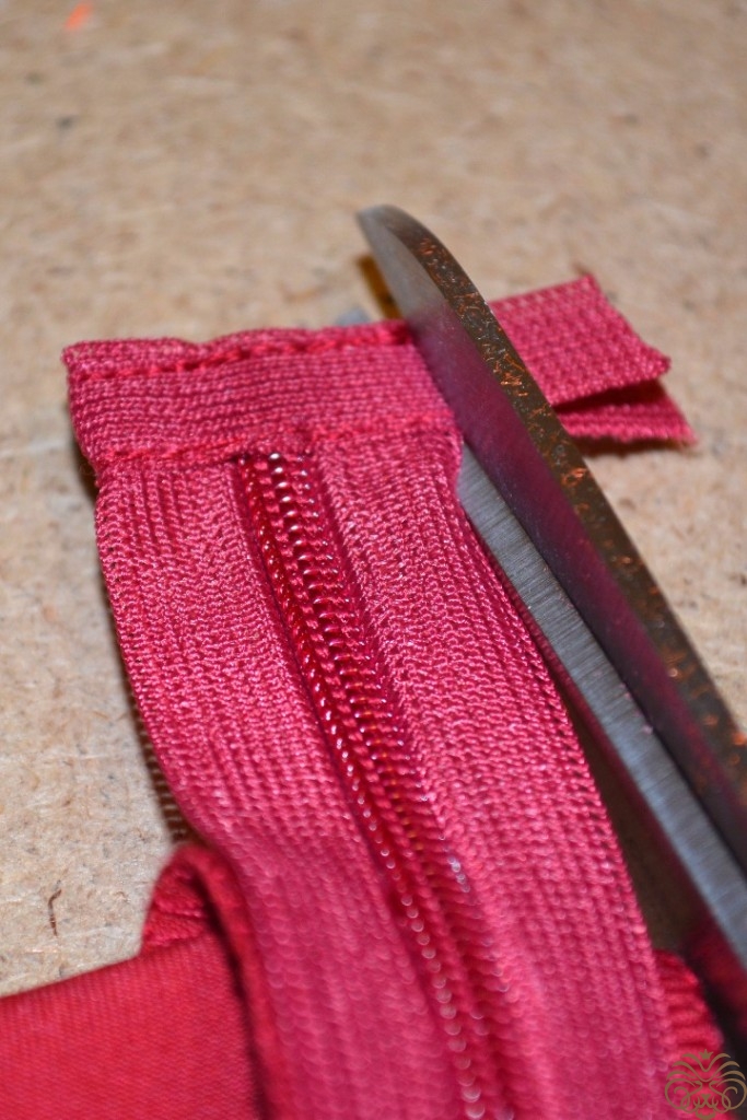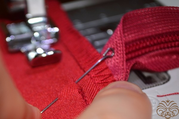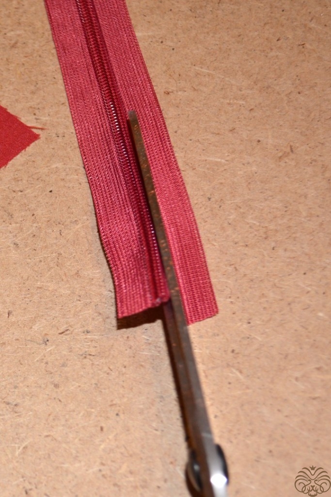 12. Оборачиваем этим кусочком край молнии, так чтобы край был как бы в кармашке