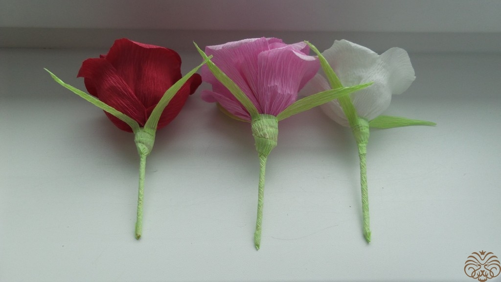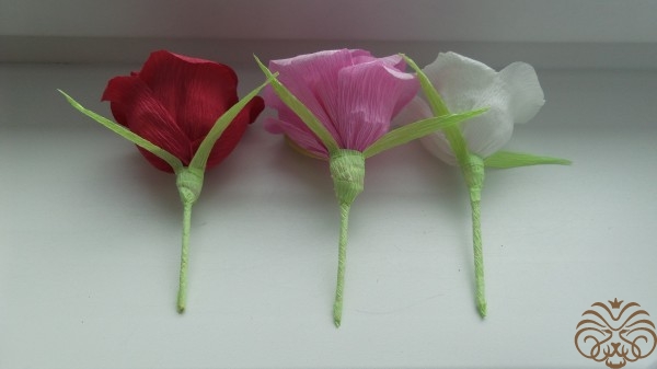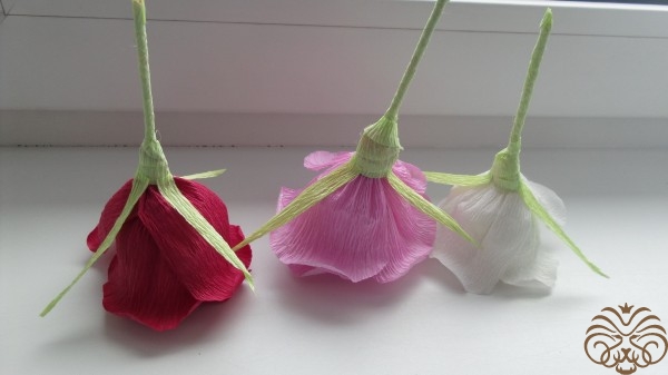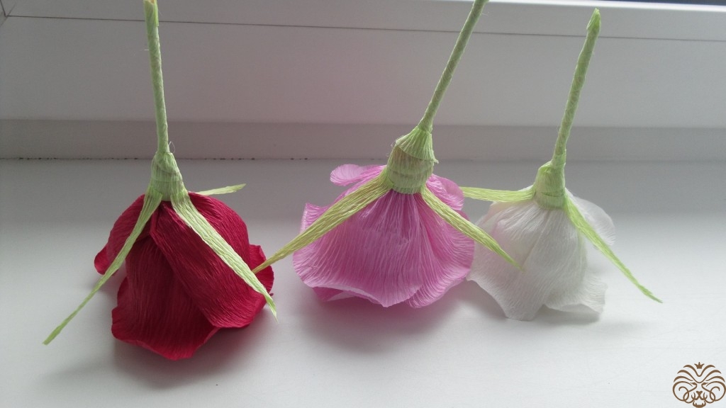 - гофрированная бумага желаемых оттенков для лепестков и зеленая для стебелька