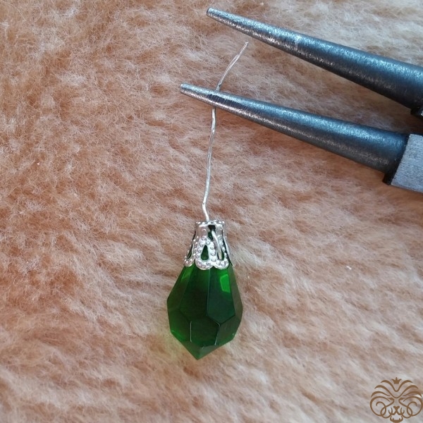 1. Вставляем пин-шарик в бусину с ажурным колпачком.