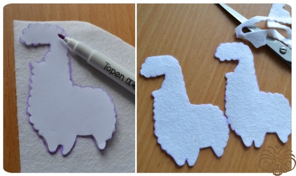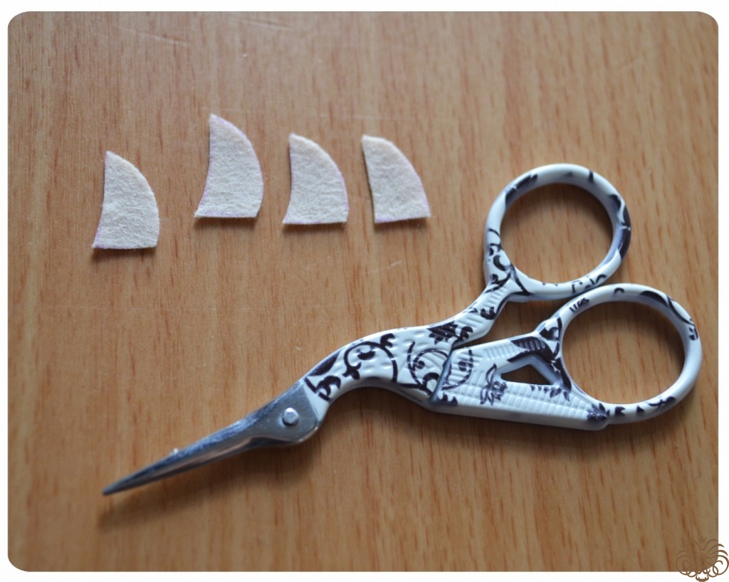 И обводим и вырезаем 4 детали ушек для наших альпак
